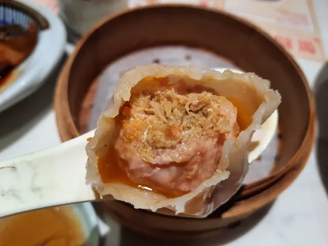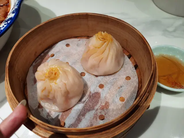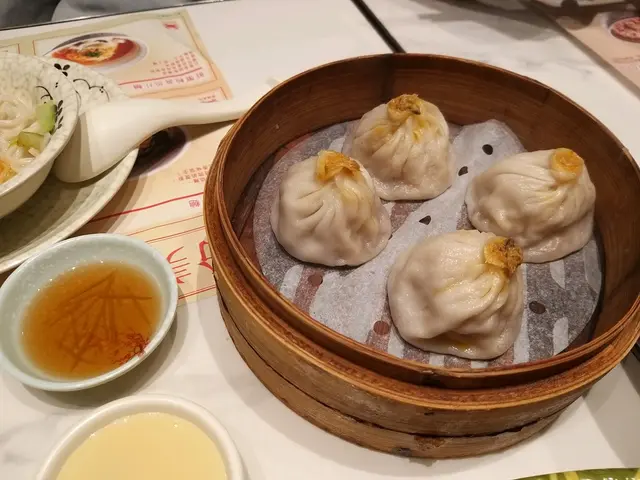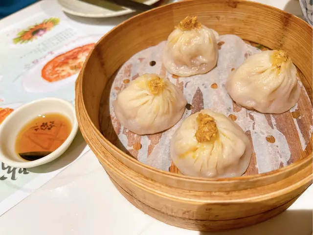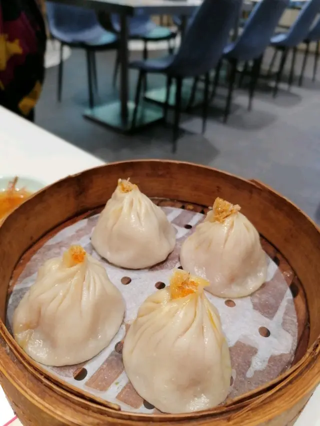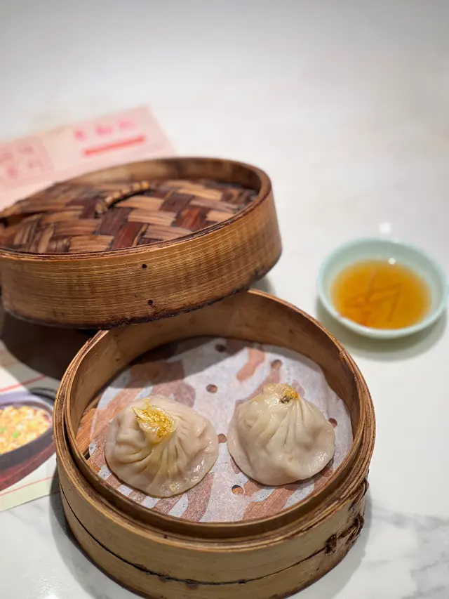蟹粉小籠包小巧晶瑩,蟹黃香氣四溢,湯汁豐沛,蟹粉愛好者的必點