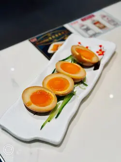 夏味燻鴨蛋金黃油亮,蛋黃呈現燻製痕迹,鬆軟綿密,略帶鹹甜