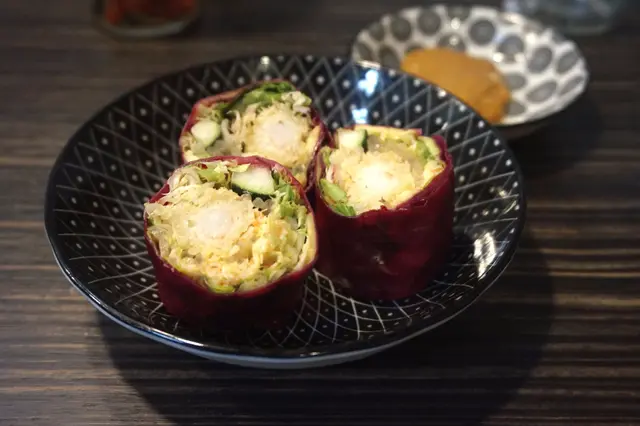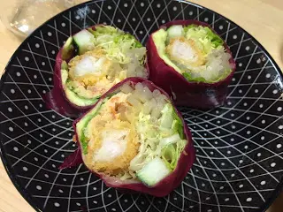 今日不停四處食,來到晚飯時間,實在還未吃得下,正好經過這裡,食些檬粉和小吃就剛剛好了。店子非常窄小,廚房採用開放式設計,看上去也光亮整潔。全店主要是以吧位為主,只有最尾的位置擺放了一張四人枱,總計也大穊只有十六個座位。餐牌上的選擇不多,湯河只獨沽一味做牛,店員說因舖子及人手問題,寧願專心一致主攻一樣,總比心多多,樣樣都做,到頭來卻幾面不討好為佳,聽後深表同意!所謂知己知彼,量力而為。蟹肉及天婦羅蝦米紙卷($38) ~ 米子卷呈紫紅色,原來卷皮混入了紅菜頭汁,真是健康又有心思;餡料有生菜、青瓜、牛油果、蟹肉及炸蝦、口感豐富,沾上特製的混醬(花生醬、是拉差、醬油),真是夏日清新之選👍🏻燒豬頸肉春卷撈檬粉($78) ~ 這個撈檬粉是店家特別為不吃牛的人士而設的,有燒豬頸肉、扎肉和春卷。豬頸肉焦香美味,春卷迷你的骰;香脆可口,扎肉就比較普通。檬粉爽彈,加上酸辣汁、薄河葉、金不換、和鵝蒂(越南芫荽),清香醒胃!迷你黑武士越南三文治($35) ~ 竹炭麵包是自家製的,勝在坊間較為小見,既特別、又健康。別看這包仔細細,內容可是相當豐富的;分別有扎肉、薫蹄、肝肉醬、豬頸肉等。薰蹄煙煙韌韌;豬頸肉薄薄的卻很Juicy,邊位燒到微微焦香,甘香美味!肝醬味道濃郁,附上的酸辣醬汁卻剛剛可以平衡那濃重的味道,相當不錯!排毒水 (Detox Water) ~ 有兩種選擇,其中一款是菠蘿加薄河葉及青檸水、因沒有加糖水,所以味道比較清淡,只有菠蘿的酸甜,薄河葉的清涼。另一款是杞子、無花果加紅棗、清清甜甜,健康又有益。見樽身比較高瘦,要用一支長匙才能把材料取出來食用,有點不大方便;細問下,才知道他們另有一間餐廳在附近,這些樽主要是給叧一間用作外賣之用的,所以有點不太合用。對我們不吃牛肉的人來說,雖然選擇比較有限,但味道出色,也是可再次到坊的。…查看更多