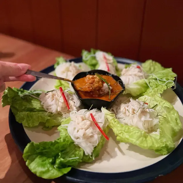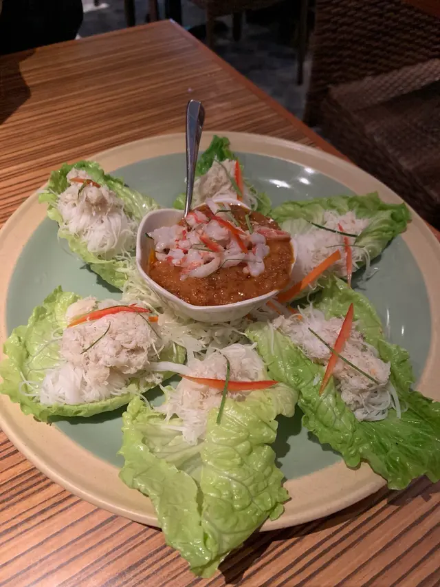 #冬陰功 🌶️🦐食泰菜點少得冬陰功,酸酸辣辣好醒胃🌶️仲有菇菌同大頭蝦🙂佢有S/M/L 份量揀,多人少人都可以揀岩自己既份量幾貼心🥰HKD92#蟹肉米粉生菜包 🦀一上枱已經一個個用生菜包好晒蟹肉同米粉,只要自己加個醬汁落去就食得好方便~個汁用左肉碎,蝦,花生,椰奶去整,夠開胃🤗HKD88#沙嗲串燒 🍢叫左豬牛雞mix版,各2串😌3款肉質都唔韌😉HKD108#蟹肉炒飯 🦀🍳❣️蟹肉炒飯炒得乾身有鑊氣😋淨係蟹肉蛋絲簡簡單單已經好滿足😊HKD128#椰青 🥥❣️又大又新鮮,非常冰凍鮮甜清爽既椰青😍一個字:正‼️HKD58#黃金夢 🍍🥭用左鮮菠蘿汁加鮮芒果汁打成,好原汁原味😙如果凍啲就好😉夜晚仲有其他cocktail揀HKD60全部侍應都係泰國人,一路食一路聽到佢地講泰文,環境夠chill,好似身處泰國食飯咁地道😎加一服務費#泰簡單#fafafoodie_銅鑼灣…查看更多