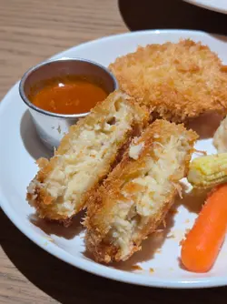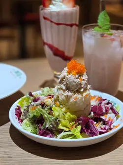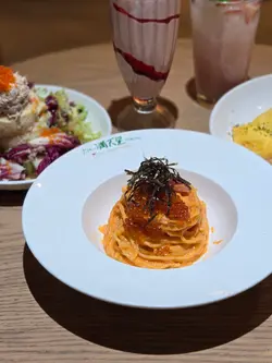 今天跟朋友🛍️購物後,到了位於尖沙咀海港城🏙️的日本東京過江龍「グリル滿天星」🍳,是一間擁有47年歷史的超⼈氣⽇式蛋包飯專⾨店🇯🇵。✨️餐廳由⽇本昭和天王御廚秋⼭徳蔵的⼊室弟⼦ —— 窪⽥好直 創⽴。他們最近推出了全新《福岡名物明太⼦菜式系列》🍽️,每款菜式都將明太⼦獨特的鹹⾹提升🧂,還有選⽤時令⽩桃🍑,創作出三款清新甜品🍰,粉嫩果⾁⾹氣四溢🌸,帶來柔滑多汁的⼝感😋。我們都急不及待來試試新品🤭火炙原片明太子蛋包飯蛋包飯表⾯鋪上四塊原⽚⽕炙明太⼦🐟,明太⼦外層被淋上⽇本清酒🍶,再⽤⽕炙⾄微焦🔥,令外⽪及⿂卵表層產⽣微微焦⾹,鮮味更加突出😋,同時保持明太⼦的粒粒⼝感✨。 炒滑蛋就以三隻時令⽇本蛋🥚炒成流⼼滑蛋,內裏藏有mozzarella 芝⼠🧀。⼀⼑切開🔪,蛋漿隨即流出,蛋⾹與芝⼠混合🫶,蛋味濃郁,質地奶滑。 ⽽蛋包飯的靈魂明太⼦醬汁💫,店家就選⽤北海道 3.6 ⽜乳🥛及福岡明太⼦🐟慢⽕調製🔥,⼝感綿滑⾹濃。⽶飯採⽤⽇本七星⽶🍚,以⾃家番茄湯底🍅加洋蔥🧅、筍等蔬菜燉煮,飯粒吸滿湯汁🍲,每⼝都美味🤤。超濃郁火炙原片明太子意粉意粉表⾯也鋪上原⽚⽕炙明太⼦🐟,味道鹹⾹鮮味🧂,意粉⼝感彈⽛🍜,吸汁⼒強💦,每⼀條意粉都掛滿柔滑濃厚的明太⼦醬汁,加上三⽂⿂籽🐠和紫菜🌿點綴,味道豐富,⽽且層次分明🎨。蟹肉薯仔沙律蟹肉🦀薯仔沙律清新可口🌿,薯仔綿密香滑🍽️,鮮甜的蟹肉放在薯仔🥔面上,兩者完美融合💫,冷食更能突顯海鮮鮮味,是一道簡單開胃的前菜🍴。忌廉蟹肉餅忌廉蟹肉餅🦀外脆內嫩🔥,蟹肉鮮甜😋,忌廉醬香滑濃郁🍶,每一口都充滿層次感,餅身不油膩,配上少許鮮蕃茄汁🍅,更添清新🌿。日式白桃梳乎厘梳乎厘也是店家必點的甜品❗️熱騰騰的梳乎厘蛋香濃郁🥚,外層微脆🔥,內裡柔軟💫,入口即化🌬️,質感輕盈如雲☁️,配搭果香清甜的時令白桃🍑,平衡甜度⚖️,層次豐富,甜而不膩🍭。日式白桃巴菲日式白桃巴菲層次分明🍑🍨,視覺與味覺同樣出色,白桃果肉鮮甜多汁🍑💧,搭配香滑雪糕🍦及酥脆穀物🌾,口感豐富。每一層都帶來驚喜🎁,甜而不膩,清新怡人🌸。士多啤梨奶昔士多啤梨奶昔質感綿密🍓🥤,香甜濃郁🍬,入口冰涼滑順❄️,士多啤梨果肉細膩🍓,甜度適中🧊,不會過膩😊。巨峰乳酸梳打巨峰乳酸梳打清爽怡人,巨峰葡萄香氣濃郁🍇🧃,酸甜平衡⚖️,可以解解膩💧。…查看更多