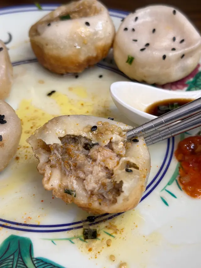 一下子被掃版嘅生煎包專門店😳 睇住佢裝修,既然咁紅,緊係要試試😆S2 麻醬手撕雞絲粉皮+生煎包2隻 $54天口熱真係無乜胃口,我會食涼拌,份量唔少,有好多青瓜絲,清爽開胃。生煎包有原味及蟹黃,套餐就跟原味,2隻點夠喉,所以單點多隻蟹黃味$18/隻。原味已經爆哂汁,其實佢係屁股向上再灑上芝麻,所以面簿,而底做返厚底少少等佢無咁易穿,煎到個底脆增加口感。蟹黃就更加濃郁,$18/粒唔平,但真材實料,蟹黃蟹肉真係填滿內餡,湯水同樣咁多,食落滿滿口感!…查看更多