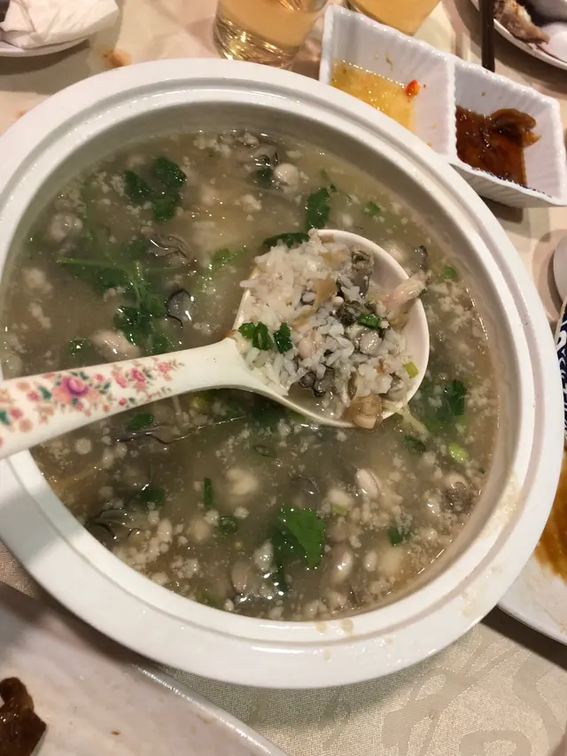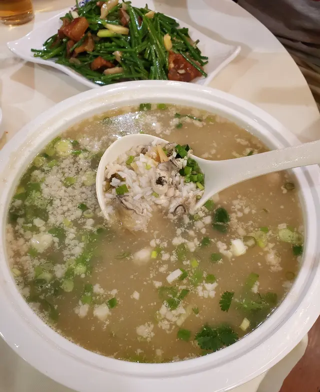 好耐沒有吃打冷,又唔想入元朗屯門甘遠去食,就近系荃灣就最好,朋友帶我們去荃灣明記打冷聚舊。記得明記在荃灣是老子號打冷店,很久以前已吃過。服務員見地鋪顧客太多,叫了我們去對面街分店吃,這間分店在樓上鋪的,樓梯有很多明星照片,果然是打冷專家。裝潢得好光猛,坐得好舒服,地方乾淨企理。我們點了蠔仔肉碎粥,好多新鮮蠔仔,粥底香味濃郁。蠔仔餅,大大隻蠔仔,香香脆脆的。鹵水鵝片,啖啖鵝肉,嫩滑有咬口。韮菜花炒鹹肉,好有鑊氣,香味十足的韮菜花,夏天吃是最爽口的。老闆真很大方,每枱消費滿$300,就送一碟鹵水雜拼,真的很有驚喜。並且最誇張系碟碟都大大份的,真的值回票價。…查看更多