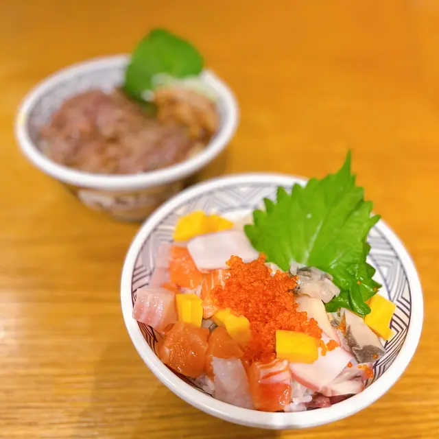 一直想試下依間,係銅鑼灣駱克道分店每次經過都見到滿晒座,都幾岀名下咖,今日唔知食乜好就落左佐敦個food court到睇下,我先知道原來開左間係到😱有得食又唔洗等位😆-💕 角切魚生丼 $88👅好味指數:7/10配料有玉子、三文魚、螺、八爪魚、劍魚腩同蟹籽,都好新鮮,丼飯份量都好多,但配料都多到足夠餸哂成碗飯😆-💕 鵝肝和牛丼 $108👅好味指數:8.8/10我比較中意和牛丼多過海鮮丼😳鵝肝厚肉煎得好香,入口即溶☺️。和牛大概有5大片,燒得剛好唔會太熟,仲有小小粉紅色💗又唔會太乾,肉質軟腍,油脂滲哂出黎🤤配埋個燒肉汁,甜甜地好正🥺💕-環境:8/10服務:8/10好味指數:8/10回頭率:8/10…查看更多