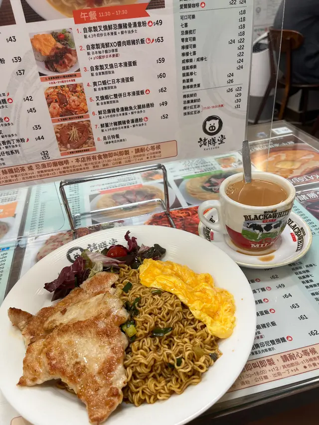 🇭🇰諸勝堂·我地已經超耐冇嚟西灣河呢邊食嘢啦😂今次嚟見到呢間冰室好似幾吸引就決定試吓😎😎·自家製叉燒日本滑蛋飯$58 l 諸勝堂招牌印尼雙撈麵$50佢個叉燒滑蛋飯都幾好食 叉燒嘅份量都幾多 而且佢個滑蛋炒得好靚 個飯都出奇地做得唔錯 唯一係佢個汁我自己覺得偏鹹少少如果佢甜啲會再夾啲🤤🤤之後佢個印尼撈麵都唔錯既 係細個7仔既味道 豬扒質感都唔錯 不過佢呢個調味都係偏鹹 要加少少湯撈一撈🫢😂😂·#rbyeat#rby港式#rby西灣河 #rby上環·📍西灣河筲箕灣道104號地下📍上環禧利街15號地下…查看更多