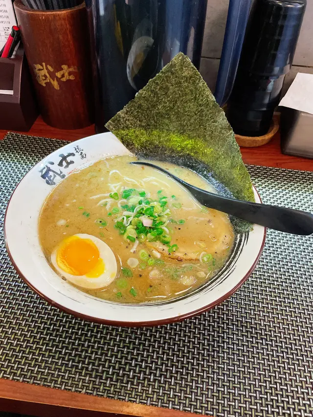 位於尖沙嘴韓國街嘅武士拉麵✨裝潢極具日本傳統拉麵店風格🎏拉麵共有十款湯底任君選擇🥢大部份都以將軍名命名👀湯底濃淡度👉🏻麵條粗幼度👉🏻同麵質軟硬度亦可由食客自行決定👧🏻相當貼心💕餐廳老闆熱情親切👨🏻🍳仲同我哋分享製作拉麵嘅心得🥰話湯底係日本拉麵嘅靈魂所在🇯🇵所以對湯底嘅要求特別嚴謹😮每日會用上大量豬骨煲8至10個鐘🐷期間不斷攪拌逼出肉汁👏🏻再混合三種魚乾同蔬菜🐟增添味道層次同減低油膩感🤠可見製作絕不馬虎🙆🏻♀️質素亦有一定保證🎀🔸豐臣將軍拉麵($98)➿四國香蔥油湯底豐臣將軍拉麵由四種不同日本蔥煮成🌱入口含濃郁蔥油香💃🏼配料有兩大塊叉燒🐖半隻溏心蛋🥚紫菜同木耳絲👂🏻拉麵口感爽滑🍜每條都沾滿湯底嘅精華😋絕對係一碗色香味俱全嘅拉麵💥🔸足利將軍拉麵($98)➿黑蒜油豬骨湯底未上枱已聞到香氣撲鼻嘅黑蒜味☺️豬骨湯底濃而不膩🐽配料一樣有兩大塊肥瘦均勻嘅叉燒💁🏻♀️混合醬油炆💫煲5個鐘🔥再用火槍燒出多餘油脂🔫食落肉味濃郁😺而且肉汁豐富🌟入口即溶💋加少少自家製招牌魚油🐠味道更上一層樓👍🏻值得一試🥳…查看更多
