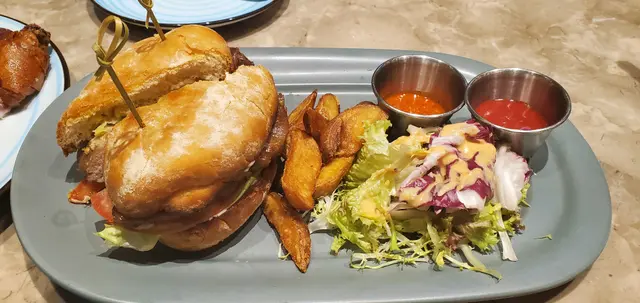 之前lunch試過這間澳式葡國菜餐廳,乳豬,豬扒包和焗飯的味道都還不錯。今晚突然想食,加上近幾日疫情緩和,就決定收工後去試。六點半左右到達餐廳,門口好大個牌寫著外賣85折,當時餐廳內用餐的人唔算多。入座後馬上落order,一個豬仔包同一份乳豬件。首先上的是乳豬件,見到薯菜好燶,點知個豬仔包的薯菜更加黑!於是問職員可唔可以換過d薯菜,點知佢答唔覺得燶~喺咁。聽到後真心O嘴。食落口好明顯唔喺新鮮,喺返炸。最後離開餐廳大約七點十分,看到其他檯的乳豬件,份薯菜擺明唔燶,正常金黃色。而且全程食飯唔覺得有service lor,仲好意思收10%服務費。建議大家唔好咁早去食。大推豬扒包~個麵包底超級鬆脆,咬落香口,豬扒不會過厚而難咬,可惜搭配的醬汁少咗d。香烤乳豬件~今次的乳豬件唔夠香脆,肉比較多的部位騷味特別濃。配菜可以忽略,因為全部烤到有碳臭味,嚴重懷疑廚房冇洗乾淨個烤架。…查看更多
