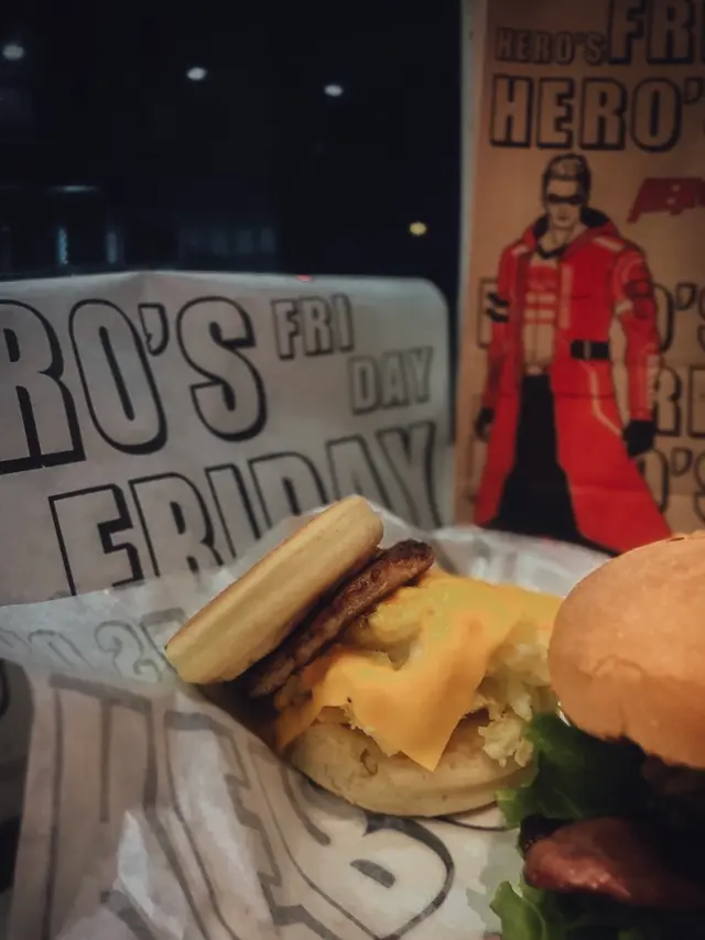 由佢岩岩開,以全港首創班堡爆紅個陣一直食到而家🥰睇住佢愈開愈多分店、愈多新口味,連黑椒牛堡、all day breakfast 都有😆,一樣都係咁高質咁好食❗️-💕 神盾漢堡 $76💕 豬柳蛋班堡 $52✨全部漢堡已包薯條🍟+汽水🥤✨可轉(洋蔥圈/薯角+$8)(甜薯條/炸雞粒+$10)-💕 神盾漢堡+洋蔥圈 $84👅好味指數:9.5/10依個漢堡份量真係唔係講笑,巨大個🍔🤣勁飽肚‼️配料用上100%純牛肉、半溶芝士🧀、蕃茄🍅、生菜🥬、煙肉同薯餅,大到男人都難一啖咬哂😂牛肉一咬已經爆哂肉汁💦 肉質鮮嫩🤤好juicy超重牛味❤️加上煙肉既咸香,薯餅既脆口,口感真係極豐富😍再配上bbq醬,更加惹味🥰味道恰到好處,完全唔會膩又夠哂滿足☺️💕洋蔥圈炸得耐左小小略為有微微苦味,但勝在夠香口、洋蔥香甜,都不錯☺️-💕 豬柳蛋班堡+ 炸雞粒 $62👅好味指數:8/10一打開班堡,熱辣辣🤤芝士溶到張紙都濕左😳蛋係超滑滑蛋,重點班戟質感鬆軟帶微甜🥞炸雞粒香脆鬆化,鹽味足夠,食落唔油膩,正🥰❗️-環境:8.5/10服務:9/10整體味道:9/10回頭率:9/10…查看更多