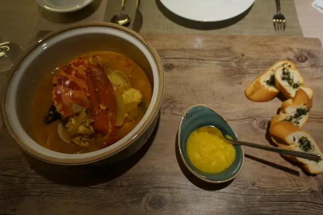 赫維灣海鮮鍋配紅花忌廉及蒜香多士