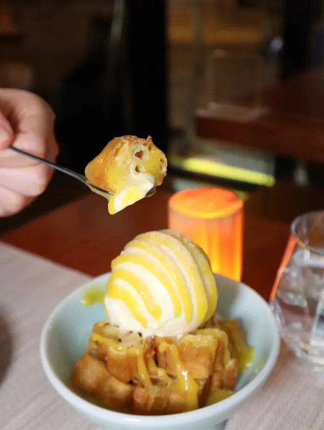 香港四周都有cafe,有時候都唔知點樣選擇先好,所以有時候一個特別嘅店名,就令我選擇咗佢🙊🙊🙊原本係抱住一個試伏嘅心態去,因為我沒有先睇咗網上評論再試,所以都唔知依間餐廳嘅質素如何佢整體嘅風格都係行工業風,光線比較暗少少,如果嚟打卡的話,建議坐窗邊嘅位置多少少雖然鋪頭唔大,但係食物種類都唔少,唔擔心同人食飯,唔同人有唔同口味嘅麻煩麻香海鮮扁意粉 $130 推薦指數🗯️:🌟🌟🌟因為一開始冇睇網上啲圖片,所以以為佢嘅麻香應該係那種蒜香意粉嗰種乾身,但估唔到佢係用青醬;佢整體份量都多,一個人食的話一定夠飽海鮮份量都多,蝦肉食落爽口彈牙,一啲都唔淋身,細細粒嘅帶子食落唔會好難咬,唔會好似食緊橡皮糖咁味道方面,麻香就唔係好突出,比較似食普通嘅青醬意粉,而且食得多會覺得有啲滯濃香 X.O醬炒雞絲粉皮 $124 推薦指數🗯️:🌟🌟🌟🌟依個雞絲粉皮同我哋平時食開嘅雞絲粉皮唔同,除咗因為係用XO醬去炒之外,佢嘅粉皮同我哋平時食嘅都唔同,似係紅薯粉嗰種有少少煙韌嘅感覺,而且都比較厚身,但都好吸味,一食落口,每條粉皮都充滿X.O醬其他配料冇頭先扁意粉咁豐富,但係吸收晒X.O 醬嘅味,所以食落好惹味,同埋層次豐富啲鮮奶黑芝麻 $38 推薦指數🗯️:🌟🌟飲落唔算好重黑芝麻味,奶味比較明顯,而且顆粒感都幾明顯,不過飲完好有飽腹感超脆油炸鬼配芒果汁及雪糕 $68推薦指數🗯️:🌟🌟🌟🌟平時食油炸鬼都係配白粥,但係估唔到油炸鬼配雪糕也好適合,油炸鬼外面好脆,裏面啲雪糕又軟滑,不不單止食落外脆內軟,更有冰火二重奏嘅感覺整體來講,味道環境都唔錯,值得一試⭐️以上均是我個人觀感,每個人嘅口味各有不同,所以末必同每個人嘅用餐感覺一樣,如有不同,敬請見諒。…查看更多