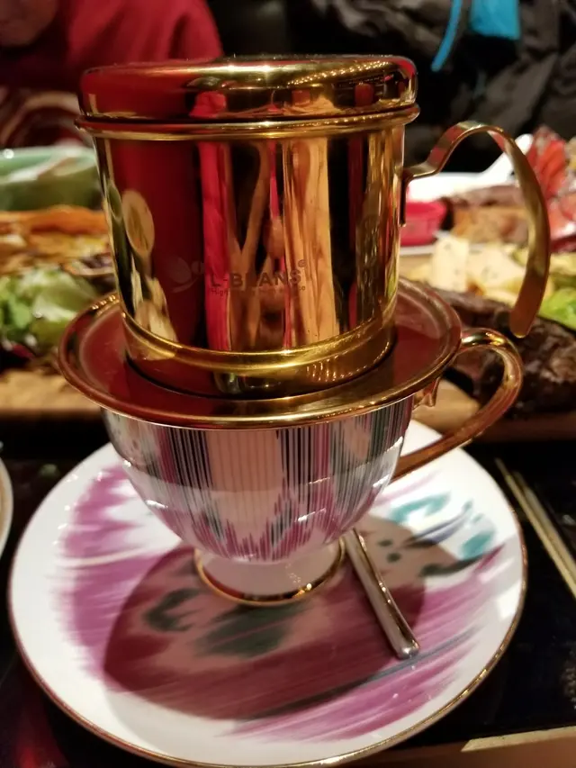 難得今晚可以準時放工, 一於約埋三個同事吹水吃晚飯。有人提議公司附近有一間越南餐廳口碑唔錯可以一試。餐廳位於一座商廈樓上,面積不大只能容納二三十位顧客。 但佈置高雅,以紅色為主;什有外國懷舊風味。越式鴨肝法包烘過的法外脆內軟,被切成幾份,吃起來方便得多。 鴨肝是採用匈牙利的, 煎香後入口即溶 ;再配上新鮮蕃茄、生菜和越式香草,食得滋味呀!😋芒果軟殼蟹米纸卷軟殼蟹炸得鬆化不油膩,配上新鮮生菜和芒果 清新美味;甚合女仔口味。😜越南香芧豬排 職員特別推介因他們的豬不是用巴西豬,而是來自美國的豬柳;所以肉質特別軟腍和豬味濃。加上香芧特別處理食落香口惹味。特強宿醉劑(法式火車頭金邊粉)只睇個名以為是酒精飲品,經職員講解後才明白原來是一個雜錦金邊粉。這菜式以一個具有中國皇族氣派的器皿盛載著,當職員放上檯時頓覺格調提升不少;唔知仲以為係佛跳牆。金邊粉入口幼滑。麵盅內大大隻鮮蝦和肉丸,還有很多件安格斯牛肉和牛坑腩。湯底用牛筒骨淆制,所以特别鮮甜,加少許泰式青檸和銀牙作調味,更能帶出整窩火車頭金邊粉的美味。而份量足較我們四人食。越南咖啡…查看更多