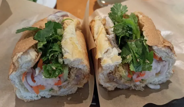 呢間小店N年前幫襯過深水埗店,印象已經好模糊。新店搬咗去油麻地,雖然係彌敦道,但並不是地舖,而是從酒店旁的大廈入口搭𨋢上二樓。牛油果沙冰($35)同我認知中嘅沙冰唔同,唔係有碎冰嗰款,呢杯十分creamy,勁滑身,偏向似奶昔嘅口感。淡淡嘅牛油果味,味道不錯。蟹膏蕃茄湯檬($70)湯底帶酸,十分清爽開胃。配料有蟹膏餅、扎肉、豆卜、豬紅、蕃茄、香菜、芽菜、生菜,蟹膏餅好大件兼厚身,口感紮實,食落有蟹膏味;本人唔多好扎肉,但呢度嘅扎肉幾好食,彈牙,中間有啲爽脆軟骨,口感似雞軟骨腸;豆卜豆味濃;其他配料味道正常。檬粉份量足,算滑身,唔易夾斷。越式法包($60)落單時可要求開二/三/四,細心。法包微暖,外層脆裡面軟熟有𡁻頭。配料十分豐富,有腩肉、札肉、肉鬆、酸菜、青瓜、芫茜、蔥、肝醬,各款嘅調味都唔錯,尤其酸菜唔會勁酸,芫茜好新鮮好香,肝醬咸咸香香。班蘭糕($15)底面兩層十分黏身,中間夾住滑身嘅綠豆蓉,雙重口感,而且味道濃厚,不錯。PS:自助斟清水外,仲有班蘭水,聞落有香味但飲落同清水分別不大。…查看更多