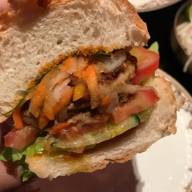 吾講吾知閣麟街呢幢比較舊的大廈開了一間幾有水準的越南餐廳,今日小妹又有口福了。 餐廳的裝修好吸睛,紅配黑好有格調,而傢私好grand 好classic , 牆上的幾幅壁畫令成間餐廳增添文藝高貴的感覺。 餐廳用的杯杯碟碟都好講究好別緻,睇黎老闆都係「完美主義者」的類型, 好的食物緊係要用精緻的餐具才可滿足食客的胃口呢! 我地幾個即興訂檯,好彩仲有位,不過要坐吧檯啦,可以見到入面open kitchen 廚師整野食的情況 , 廚房都好乾淨吾淩亂,大家可以放心食😝不過可能近廚房關係,一路食有一陣油煙味,空調都吹吾到去我的位置,呢度是唯一美中不足的地方。 我覺得呢度的appetizers 好好食,你知越南菜,好多都吾係煎就係炸, 火喉點到即止,先可以達到香口但又不會太重的油膩感。 身為雞翼控的我,點會少得呢個香茅蒜蓉雞翼! d 雞翼好大隻, 仲要係單骨,好貼心, 上檯後陣陣撲鼻的蒜蓉同牛油香令人食指大動! 炸蝦餅也是越南菜的表表者,呢度的蝦餅吾係講笑,真係好有蝦味好香,吾似得平時食開既溝左好多魚肉落去。越式鴨肝法包,係呢度的師傅誠意推介之一,就等小妹試下啦! 鴨肝入口即溶,新鮮的蕃茄同生菜中和了鴨肝的濃味感,食落一d 都吾滯, 一人一舊,份量剛好! 芒果軟殼蟹米紙卷睇得又食得,每舊大小相約,齊齊整整,薄薄的米紙包住清新的芒果肉和脆脆的軟殼蟹是一個perfect 的組合。 呢餐真係食到大家捧住個肚,視覺味覺嗅覺通通都滿足了,食得真開心! …查看更多