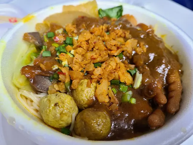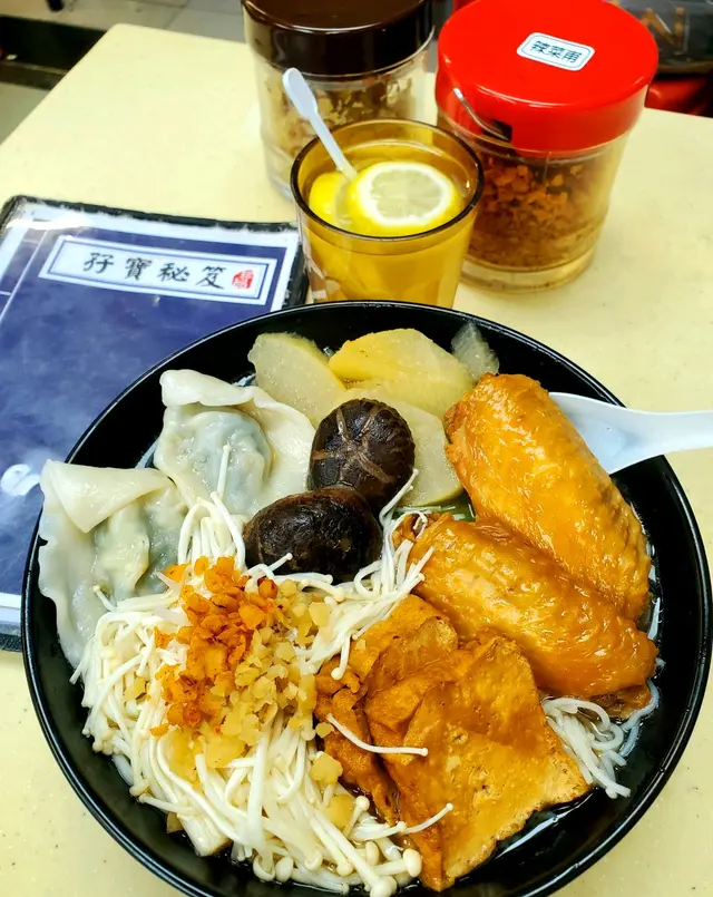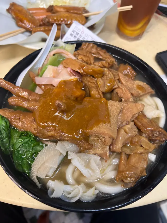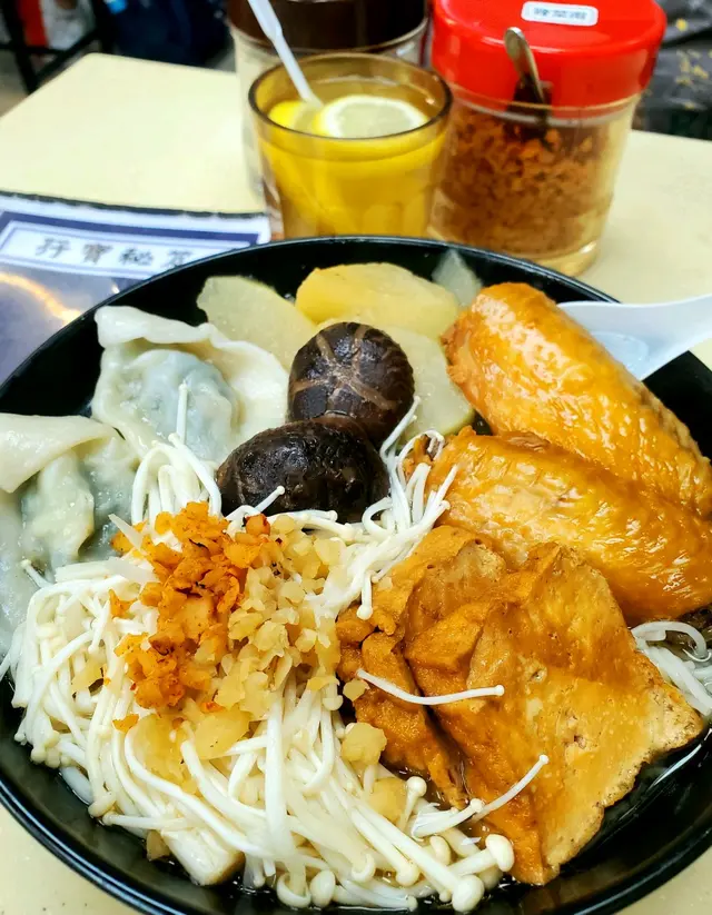 葵廣車仔麵喺葵廣行得攰攰哋,行到落地下,見到有一間車仔麵勁多人食,所以就去咗試下三餸車仔麵, $52送熱飲另外如果想飲凍飲加$3就可以啦我哋一碗叫咗腩汁,另外一碗叫咗秘製汁秘製汁幾特別,有少少似沙嗲,但唔太鹹,又有少少似咖哩牛腩好入味,好淋🐮豬頸肉平時好多地方食都會覺得好韌,但係佢一啲都唔韌 以為剩係得車仔麵,原來仲有好多香港小食😆腸粉魚蛋應有盡有跟住見到勁多人,叫韭菜豬紅湯但係已經食飽飽了,下次再嚟試吓先😋…查看更多