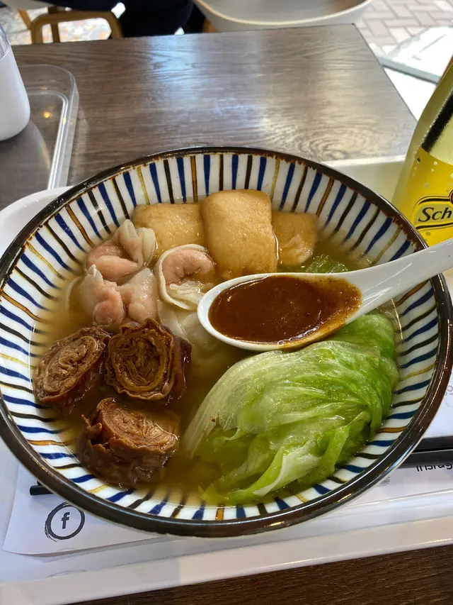 去到旺角想食個快餐,黎左呢間車仔麵試下。叫左碗牛腩,麻辣魚蛋配油麵。牛腩味道都幾濃味,只係老左少少。魚蛋幾彈口而且辣味唔算太重,怕辣嘅人都食得。麵質偏向林,要視乎自己鍾意食咩麵嘅質地。見佢小食幾吸引就叫咗炸墨魚卷,炸燒賣同菜心。炸墨魚卷就睇落比較油,但係食落去外皮脆口內裏彈牙,同埋估唔到都幾大塊,整體算唔錯,幾好食。而家唔係好多地方有炸燒賣,睇落粒粒都金黃色,幾好吸引。食落去幾脆,配埋甜酸醬好夾。健康啲可以叫返個菜心有腩汁同蠔油揀,我地擇左配蠔油,菜心都幾爽口,煮嘅時間應該正常。但野飲叫咗奶茶同菠蘿冰偏甜,覺得加得比較多水,反而麻麻地。舖頭地方都坐得幾舒服,嚟到旺角食個快餐,食車仔麵係一個好選擇,簡單又快手。…查看更多
