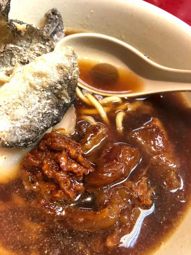 三款餸車仔麵黎到嗰下其實我第一個感覺係有少少驚訝 🙀 原因就係佢將啲炸魚皮放咗喺碗麵入面 🤷♂️🤷🏻♀️咁即係話郁一郁個匙羹 啲魚皮就會浸落個湯底瞬間就會變林 🤡🤡食唔到佢脆卜卜炸魚皮嘅感覺 依個嘅處理係非常之令人失望的💥 第一次食車仔麵嘅炸魚皮係連埋啲面一齊放講下佢啲腩肉先 佢講到明係秘製豬腩肉 👐🏼咁就試吓佢係咪同出邊嘅係有一個明顯嘅分別新記車仔麵嘅腩肉就係比較大塊而且佢嘅肉都係會比較肥 🐷但係呢就食唔到啦有啲乜嘢特別嘅秘製醬汁 都係唔算話太過特別🤔最後 就係食咗佢嘅牛孖根 依到既牛孖根唔會太韌 食落都算係容易入口 唔會太難咬份量都唔會太少 應該都有三至四舊到呢個算係比較正常 😅😅 唔會話令人失望的總括而言 見到新記車仔麵咁多人推介 又有咁多報紙 📰 飲食專欄推介 但係今次親身試過就覺得唔係話太過特別😗個人認為僅屬一般車仔麵 只係佢嘅湯底辣味係比較突出 其餘嘅餸菜算係ok la 水平