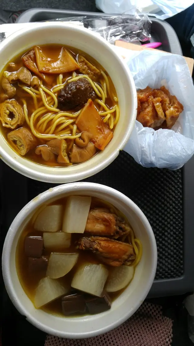 話說我最好唔鐘意食車仔麵因為好似乜嘢狗屎垃圾都扔哂落去係咁不如我自己煮公仔麵啦但身為一個專業嘅食評家理應係乜嘢都食嘅 咁啱同事今日叫車仔麵外賣就join埋喇!叫咗牛腩、貢丸、甜齋果然!好食!我宣布 我而加正式同車仔麵道歉首先啲餸好足料 牛腩起碼5,6舊 香牛味好易咬同埋唔痴牙貢丸有3粒 仲同平時食嘅好似有啲唔同!佢更加香唔知加咗啲咩香料呢最驚喜係個甜齋 原來用袋裝 感覺好似好多咁