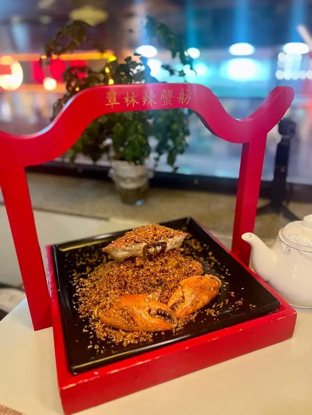 今日放假同朋友嚟食尖沙咀翠林辣蟹舫,呢度招牌菜係蟹,有不同的小菜都有八折優惠,呢度的小菜好有水準同鑊氣,餐廳裝修整潔,座位舒服,可以好舒服地用餐。招牌避風塘炒蟹🦀- 每一台都叫嘅招牌菜- 上碟已經已經聞到好香嘅避風塘味,用咗大量嘅炸蒜同麵包糠- 蟹非常大隻,分量超級充足- 蟹肉結實厚身,夠哂新鮮,食落啖啖肉- 蟹肉鮮嫩,而且夠入味- 非常香脆惹味,少少辣好惹味,撈飯食真係一流🤩黃金鱔球- 鱔球炸得金黃色,外皮酥脆,加咗鹹蛋黃碎更香更惹味- 份量好多,鱔球肉質厚身,師傅起身起得好乾淨蜂蜜燒汁牛柳粒- 牛柳粒切得均勻,有咬口得來唔會太韌- 🥔薯仔炸到好香,配上醬汁好惹味,鑊氣十足整體來講,呢度嘅中菜鑊氣十足,尤其係招牌蟹一定要試;店員態度都好親切;環境乾淨衛生。…查看更多