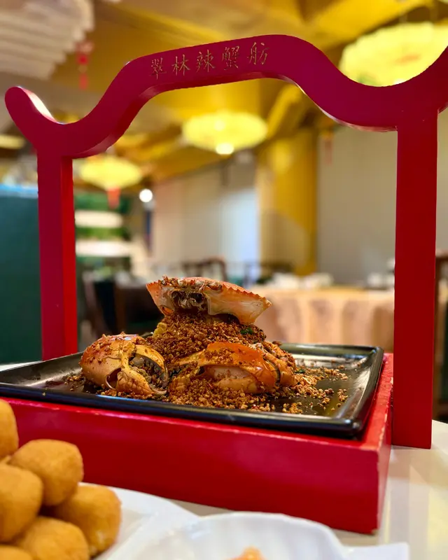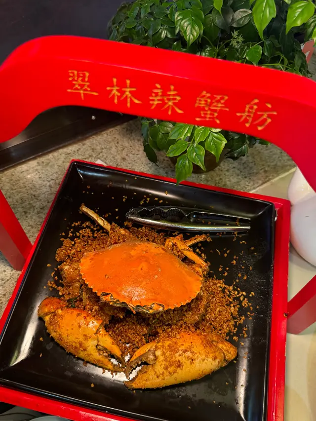 🦀🦀🦀今日OT同朋友成10點先食晚飯好多餐廳都收哂😭見喱間翠林辣蟹舫可以開到夜晚11:30而且一去到餐廳樓下就見到貼左好多明星相🤩睇黎係名人飯堂黎 所以決定入去食😋今次叫左佢地幾碟招牌菜:黃金豆腐 先講講個前菜🤪原來前菜都好大碟 有勁多舊豆腐😱豆腐炸到金黃色香噴噴咁 食落外脆內軟😳點埋泰式辣醬 酸酸辣辣咁增加味道嘅層次😚避風塘炒蟹🦀餐廳有5款煮法比大家簡🤭可以簡避風塘、黃金流沙、蟹油醬、薑蔥同胡椒第一次黎食就簡左最人氣嘅避風塘😋😋辣度可以選擇小辣、中辣同大辣一上枱到真係嚇親我😱個presentation好有氣派之餘 隻蟹仲好大隻好有霸氣呀🦀仲要勁多香蒜鋪喺面 😋食落隻蟹啖啖肉 超級惹味🤪侍應話原來蟹一般最靚係中秋之後 又長知識了😳睇嚟10月又要再同約親戚朋友食多次🤩福花菜炒咸肉食太多肉點都要叫返個菜中和下😂餐廳加咗少少辣椒喺面 令到即使係炒菜都更加有鑊氣更加香辣🤭食神炒飯🍚對於我呢種飯桶來講 食中菜又點可以淨係食餸😂所以點都要叫埋個飯😆炒飯賣相好靚 成座金字塔咁😍頂層最高鋪上我最愛食嘅蟹子🦀每粒飯都炒得粒粒分明 但又唔會油👍🏻:):)💬提提大寫 餐廳要用安心出行如果打齊針 就可以12人一枱 岩哂同親戚朋友食飯聚舊😏😏…查看更多
