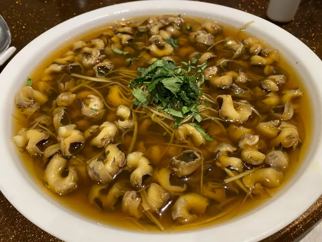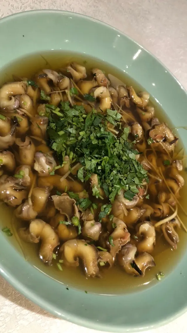 一行六人食私房菜~呢個酒香花螺,用咗唔知花雕定係黃酒去浸過花螺加上芫荽,酒嘅味道唔會喧賓奪主反而突出左海鮮嘅甜味