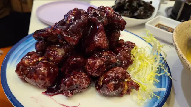 由於今日一起身突然間好想食花膠雞煲所以就同男朋友提出咗呢個要求結果佢就搵咗。榮哥主場。俾我主打$298嘅二人套餐花膠雞煲仲要都OK大😍立即馬上book咗枱先收工之後由於餓到癲左所以兩個人直仆過去 。花膠雞煲。係大量嘅花膠呀😍😍😍比較爽口但係好入味雞肉都非常之嫩滑😲😍呢個係我意外收穫因為出面食過好多花膠雞煲啲雞都靭到不得了🥺呢間係極度嫩滑👏🏻。酸甜藍莓骨。見到呢一個都係老闆介紹之一所以就叫咗肉都比較嫩滑如果個藍莓醬可以濃啲就好啦🤤呢個係我第一次遇到嘅煤炭飯其實係黑糯米口感好特別好軟糯不過裏面有提子乾🤢整體上其實都好好食老闆都非常之幽默風趣🫶🏻會再食👏🏻…查看更多