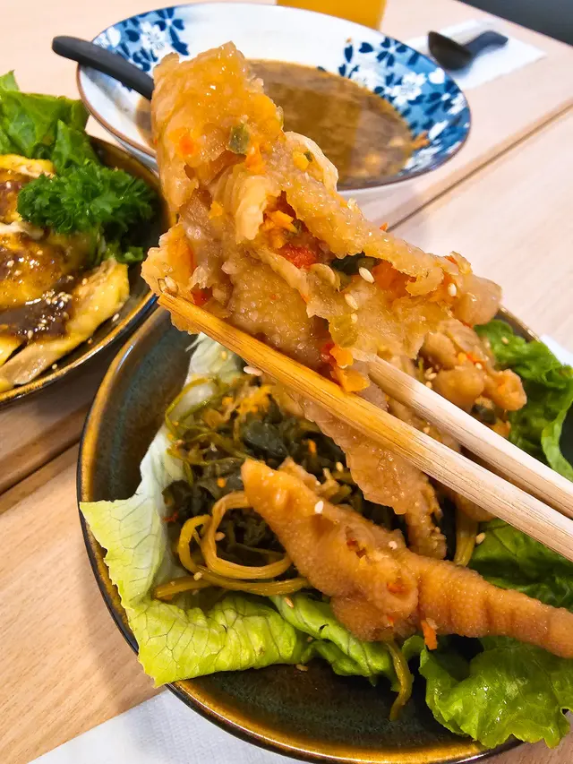 好姊妹係一個typical嘅中環office lady,工作日常都是坐多過企,工作繁忙,又冇乜時間做運動,好容易水腫同埋中央肥胖,所以佢成日都會食好多低脂低卡路低碳水化合物嘅食物,前幾日佢仲特登帶我嚟呢間喺中環擺花街嘅蒟蒻餐廳 <五感日常> ,佢話近排呢間餐廳成為咗佢哋公司其中一個飯堂新寵.餐廳主打嘅蒟蒻餐款式都幾多,重點係低碳水,纖維高,絕對係好適合一眾貪靚又為食的女士們啊!🟣每日鮮煲海螺雞湯 貪靚的女士們都會愛湯水,這款海螺雞湯,每天都是早上新鮮即煲仔,真材實料,入口鮮甜,啱晒我哋兩個潮媽滋補養顏啊!🟣酸辣無骨鳳爪 無骨鳳爪,爽口彈牙,秘製酸辣汁熱醃得非常入味,底部也有很多自家製的醃芹菜,微辣爽脆又滿油有麻油香,絕對酸香醒胃🟣無骨口水雞 好閨蜜極推介我食呢個無骨口水雞,仲大贊食過番尋味,雞肉嫩滑,連雞胸位置也是Juicy的,雞皮爽口彈牙絕無油膩感,最正係個自家製的天然香料五辛口水雞汁,採用各種不同的香料烹煮混合而成,絕無唔似出面嗰啲油淋淋嘅口水汁,天然的麻辣味更加吸引呀!🟣自家製雞湯浸娃娃菜 娃娃菜索哂自家製雞湯汁,富有爽甜的鹹鮮味🟣蒜香辣椒焗蠔撈蒟蒻麵 舖上枱已有很香的蒜香焗味,雖然生蠔不是很大隻,但是非常新鮮,最正係原汁原味蠔水充滿的蒜蓉味,超級惹味,用嚟撈麵食真係一流呀!餐廳主打蒟蒻餐,以蒟蒻取代五糧,蒟蒻麵煙韌剔透,睇落似芋絲,入口非常爽口彈牙,配料還有很多青瓜絲,生菜絲,甘筍絲,魚乾仔,淋上林自家鰹魚撈麵汁和新鮮的蒜香生蠔汁,惹味又十分有口感,且蒟蒻麵份量也不少,食完絕對有飽肚之感🟣桃香烏龍冷泡茶加$8健康餐當然要配健康茶啦,這個烏龍茶底都幾香,清淡的茶味蘊含着陣陣的桃香,炎炎夏日確實消暑提神啊!…查看更多