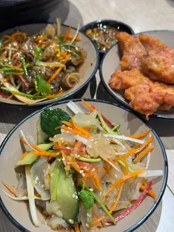 喜歡食餃子既我,經常尋找獨特又美味嘅餃子店。今日去太子經過 - 山東小城,正宗北方手作水餃,墨魚餃更是香港首創,睇見都想入去試吓。除咗太子西洋菜南街分店之外,總店在大角咀埃華街,兩間店同樣抵食又好食。店內設計以木系簡約裝修,環境舒適。自家製餃子每日新鮮製造,現包、現煮嘅傳統手工餃,除咗有上湯餃子、酸辣湯餃、生餃,亦有湯麵、菜飯、燉菜、餡餅、小食及自家製飲品 ; 依度嘅靚湯係用新鮮食材每日熬製,非常清甜絕無味精,用心製作。同埋呢度嘅下午茶餐價錢親民,值得一試。雙拼餃子 配 蟲草花南瓜雞湯 $62揀左獨創嘅墨魚馬蹄餃同紫洋蔥牛肉餃,餃子皮厚薄適中,煙煙韌韌,兩款餡料爆滿;墨魚馬蹄餃用上墨魚汁搓成餃子皮,包著彈牙墨魚同爽口馬蹄;另一款紫洋蔥牛肉餃,牛肉鮮嫩,紫洋蔥爽脆,有點咬口,與牛肉很配,鮮甜美味,肉汁非常豐富,配合清甜滋潤嘅蟲草花南瓜雞湯,美味可口。招牌三寶菜飯 $60一碟有齊3種肉類,手撕雞+炸豬扒+牛肋肉,口感大滿足!手撕雞肉質嫩滑,厚豬扒炸至酥脆,牛肋肉帶少少筋,醬汁好入味,炆至軟身有些嚼勁,與菜飯拌勻食,令可沾上自家製蒜蓉辣醬更惹味。醉雞卷 $38小食醉雞卷是冷盤,雞肉肉質札實,好鮮嫩,酒味相當濃郁,不嗆喉,好味道。老醋海蜇頭 (+$15)另一款小食係老醋海蜇頭,是涼拌的,海蜇頭好爽口,多款蔬菜翠綠鮮爽,微酸嘅醋味,調得啱啱好,口感清爽,好啱天氣熱食用。凍冬瓜茶 (+$5) 及 凍檸檬茶 (+$5)冬瓜茶自然清甜,裡面有龍眼肉,飲起嚟回甘潤喉,檸檬茶口感冰涼清爽,好解渴。…查看更多