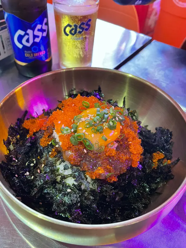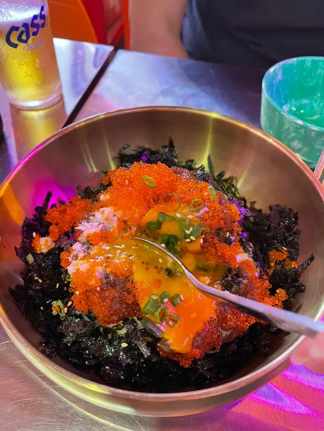 好耐冇食韓國嘢啦🫣呢間嘢都係見到身邊好多人食,估唔到元朗都有分店,太方便啦😆款款嘢都想試下嘅我咁啱俾我見到佢哋有個招牌套餐😍包括3款野食加2款韓式罐裝飲品,咁就唔洗1516啦😋1️⃣ 醬油八爪魚配沙律菜🥗先食份沙律開下胃先,加埋八爪魚又真係第一次食😆平時食嘅八爪魚都係食日本野嗰陣時先會食,估唔到加落沙律入面味道同口感都唔錯喎😋2️⃣ 新沙洞大排檔招牌套餐🥢一個sᴇᴛ有齊咁多嘢真係好抵‼️ 小食拼盤入面有年糕、芝士條、紫菜粉絲卷同韓式餃子🥟 真係樣樣都好好食😍濟洲黑毛豬係當面放係鐵板度燒㗎,全部都係滾熱辣🔥 肥而不膩,燒完外皮脆脆,又好ᴊᴜɪᴄʏ,識食一定用生菜包住嚟食✨配菜都好好食🍚而韓式炒粉絲可以3選1,我就揀咗要牛肉,份量唔少之外仲有好多蛋絲🤘🏻3️⃣ 醬油蟹膏蟹肉拌飯🦀韓式拌飯真係超ᴊᴇɴɢ,蟹肉同蟹膏嘅份量一啲都唔少㗎😳 用長長嘅匙羹嚟食呢個飯好應境,靈魂之一嘅醬油同紫菜當然唔可以缺少啦,加上啖啖都有蟹肉蟹膏係超級滿足🥺4️⃣ 招牌原粒蜂巢蜜米酒🐝呢隻值得試一試㗎,因為呢度賣嘅米酒同出面所賣嘅好唔同🙈 呢度嘅米酒係附有一件大大粒嘅蜂巢,甜甜的😚 米酒嘅米味唔會太重,所以倒落杯到飲係好特別🙌🏻 一邊望住大電視播嘅ᴍᴠ,一邊慢慢細味品嘗下呢個帶有蜂巢嘅米酒,簡直就係一大樂事🥰…查看更多