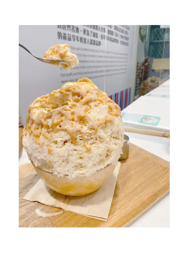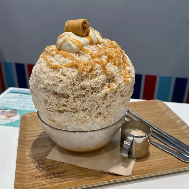 甜姨姨算是近年冒起得最快的新式甜品店🔥五花八門的甜品都能在這裡找到,而當中的最具代表性的就絕對是各種口味的刨味甜品🍧———————————————————————沙冰內外都配搭了各式各樣的配料,再加上頂部的純芒果雪條🥭層次感十足,而且店家還附上一張卡片以作說明✉️其心思值得一讚❣️刨冰質感綿密細膩,包裹着的芒果粒香甜😛芒果脆脆十分脆口😳熱情果果凍亦夠爽彈,令整個冰品口感豐富😊可是,淋在刨冰上的楊枝甘露汁嚴重不足😰並不足以令所有沙冰染成黃色🥺即使加上額外附上的醬汁,白色的部份仍然是十分之多😔令整體芒果味十分之淡😩甚至被椰子味所掩蓋🥥無論味道和外觀上都令人相當失望😮💨這款口味是以海邊走走的花生醬蛋捲作為主題🌊海量的花生粉與刨冰完美融合,每一寸冰都被染上啡色,加上厚厚的花生醬🥜整體花生味極之香濃,再淋上與花生醬絕配的煉奶🍼令刨冰味道更加香甜😚另外內部的消化餅碎亦為刨冰增添口感🍪唯一美中不足的是刨冰略為過甜🧐如果能多點花生的鹹香,相信味道會更為平衡😎豆腐花豆味十分濃郁🥰滑溜得來質地相當特別,比一般豆腐花更rich🤩甚至有點類似燉奶般creamy的感☺️相信用來製作豆腐花的豆漿本身也相當厚身濃稠,才會呈現出那麼別樹一幟的口感👍🏻唯$45的售價,以豆腐花來說實在有點高昂😅在性價比方面難免要扣點分數🤏🏻光看名字就知道材料十分豐富🤓西米、薏米、珍珠質感軟糯彈牙🙂大量紫米增加煙韌口感同時令飽足感十足🧋紅豆、椰汁亦夠香甜🫘但主角芋圓表現反而強差人意😩質感十分軟爛🤯完全與「煙韌」拉不上關係😵連這麼基本的要求都未能做到,實在令人大失所望😮💨———————————————————————作為炙手可熱的甜品店,其出品未算有太大驚喜🤔部分甚至連合格表現都未能達到🫠希望店家能繼續進步,以配得上自己的人氣🙏…查看更多