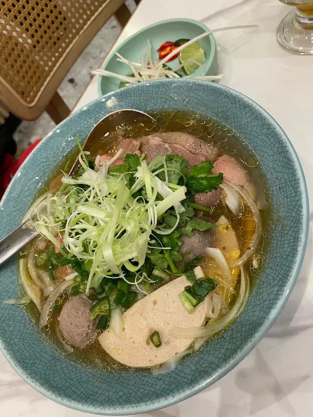 今日見得閒就入將軍澳康城個新商場行吓,蝦蟹下見到呢一間個樣好似幾舒適,有好耐冇食過越南菜,於是乎就擔粗粗試吓。❤️我哋兩大一細叫咗兩個lunch set加一碟小食,估唔到佢啲分量都幾大,竟然食唔晒😂重量級火車頭一嚟到第一個感覺:大碗到喊😂,真係重量級!首先講吓個湯底,好清甜嘅蘿蔔味,而且香料味重,感覺清新香口。而最特別嘅係肉眼片,真係入口即溶,好林又有肉味,估唔到咁高質!而和牛丸亦好香同彈牙,又juicy,所以整體黎講成碗面都高質!❤️❤️❤️西貢咖喱牛腩飯牛腩一般,肉質有啲鞋,但個咖喱汁好正!😋😋見到好多香料喺入邊,所以味道香濃,而且有少少薯仔粒,好有心思👍🏻👍🏻香芧串燒豬豬肉肉質鬆軟,呢邊燒到脆脆地,火候啱啱好,加上個沙嗲醬汁,超好食!😍😍餐飲方面,老公試咗個越南滴漏咖啡,係加煉奶,所以比較甜。而另一杯係話梅柑桔,好又話梅味,酸酸美美咁好開胃!☺️…查看更多