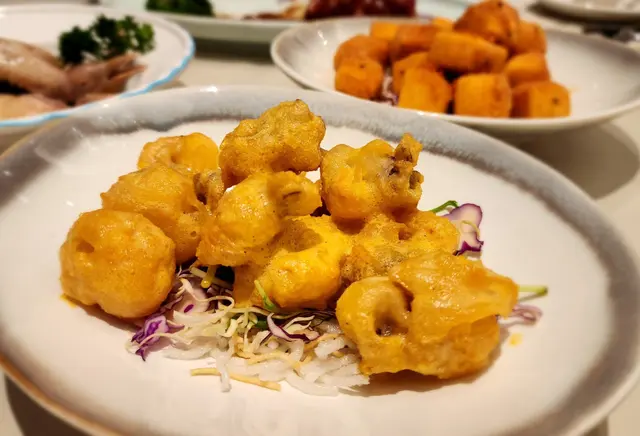 朋友推薦凱薈環境極好,有直達維多利亞港的無敵海景,今晚一行四人帶同老人家,盡情享受一下。餐廳裝橫堂皇,很有宴會感,感覺是為婚宴而設的。今晚應該是無婚宴,接受散客用餐。一直覺得做婚宴的餐廳其食物質量應有一定的水平,果然是。我們點的每道菜,精緻高質,驚喜的是,大部分菜式都一百多左右,在尖沙咀來說,真的性價比高。黑糖叉燒($168)半肥瘦叉燒,賣相已經讓人垂涎三尺,外皮微焦,非常惹味,好吃。七味椒鹽豆腐($68)外脆內軟,潵上辣椒粉,一定要趁熱吃。金沙墨魚仔($78)墨魚炸成一塊塊,由於炸粉較多,口感是有的,但墨魚味稍微被蓋過了。招牌葡汁焗釀響螺($512)這是最貴的一道菜,但個人覺得貴得值得,螺肉淡淡肉,釀著好像是洋蔥、煙肉、青椒的切粒,非常滿足。生拆雞絲燴花膠($352)這道生拆雞絲燴花膠有驚喜,味道不濃,清爽順口,大家都讚口不絕。羽衣甘藍($128)很少吃羽衣甘藍,只知道營養價值很高,降膽固醇、抗氧化等,店員推薦,這是本地城市農夫種植的,於是一試。羽衣甘藍用上湯煮,味道微甘,口感青澀。花雕BB鴿($68)賣相不錯,肉質鮮嫩,滲進濃郁的花雕酒味。拔絲鮮菠蘿咕嚕肉($168)人生吃過最拔絲的咕嚕肉!外脆內鬆軟,甜酸汁適中,口感有層次,加上新鮮的菠蘿片,讓人回味無窮。椰香脆麻花($28)居然在尖沙咀吃到28元的食物!麻花脆香,蛋味濃郁,和之前吃過的很不同,點讚!綜合這次用餐,大家都說很棒,值得再來!…查看更多