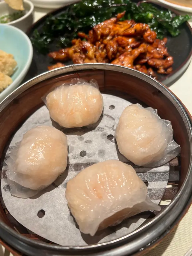 今日同屋企人嚟飲茶,品嘗特色潮州菜😋🔸炸普寜豆腐外表好似炸魚片頭,有別於普遍正方形嘅炸豆腐粒。外層酥脆,入面非常嫩滑,配埋特色韮菜鹽水,風味十足。🔸碧綠川椒雞外觀非常搶眼嘅川椒雞,見到都流口水🤤 雞肉好嫩滑,泡油後炒到乾身啱啱好又惹味,必食旁邊嘅脆炸珍珠葉😋🔸蝦醬蒸鮮魷🦑蝦醬味香濃,鮮魷彈牙。🔸金燕島蝦餃皇🦐晶瑩剔透,大大粒蝦餃👍🏻🔸金燕島燒賣皇燒賣脹卜卜好實淨,入面填滿蝦肉、豬肉、冬菇。🔸叉燒蒸腸粉🔸香茜牛肉蒸腸粉🔸鵝肉、鵝肝雙併滷水鵝肉味香濃,鵝肝軟滑。🔸大腸、墨魚雙併墨魚爽口,點少少調製過嘅白醋好好味。大腸滷得入味而彈牙。🔸反沙芋條潮州甜品點可以無反沙芋?新鮮熱烘烘送上枱嘅反沙芋,香甜可口,糖分略厚。🔸清甜桂花糕🔸功夫茶餐前餐後店員都會送上功夫茶,店員好好又主動,賓至如歸嘅感覺下次會再嚟😊…查看更多
