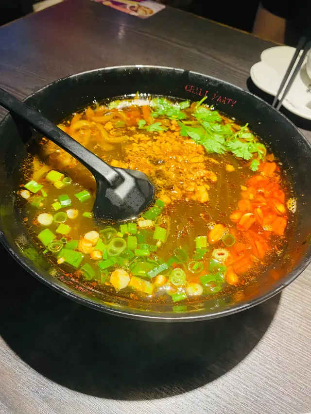 今日在尖沙咀美容,大約一時半完結又有點肚餓,和朋友打算在尖沙咀吃完午餐才回家。當我走到龍城藥房時,看到對面有間大大的餐廳叫麻辣派對。這幾天口淡淡,一直想吃辣的食物,這家餐廳正合我心意。兩個人一起吃午餐,叫了一個麻辣雞鍋及兩個粉面。本身我們也是好辣之人,因為只是第一次吃這餐廳,所以全都只是叫了小辣。兩碗粉麵,金牌酸辣水晶粉及肥牛肉雲南米線很快便上菜了。前者,酸辣得宜,水晶粉幼身又QQ,吸盡了酸辣汁的味道,超好吃!而肥牛肉雲南米線,就比較沒那樣酸,米線比較林身,肥牛吸了麻辣汁,也很好吃。一鍋麻辣雞鍋有半隻雞,和朋友一起分享,份量剛剛好。廚師把雞件切成細少份,每一件雞件也能滲透入辣汁,又辣又麻又香。最後餐廳還送了甜點,可以中和滿口辣氣!吃完了辣東西,肚子覺得暖暖的,好滿足喔!…查看更多