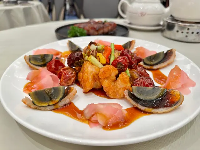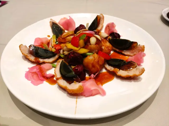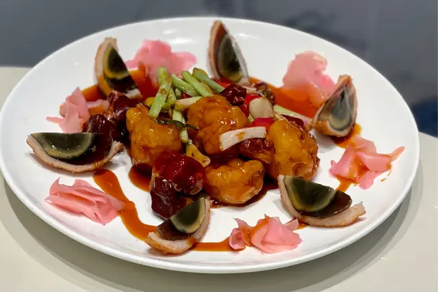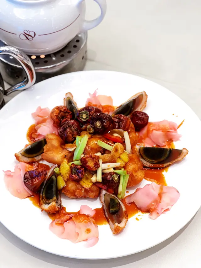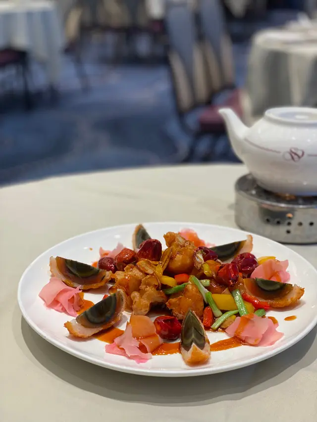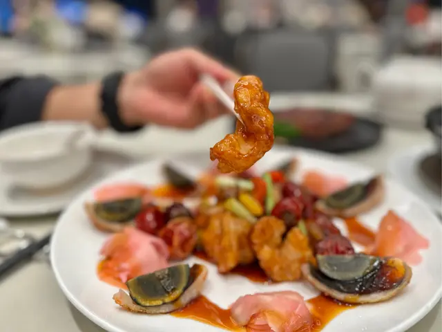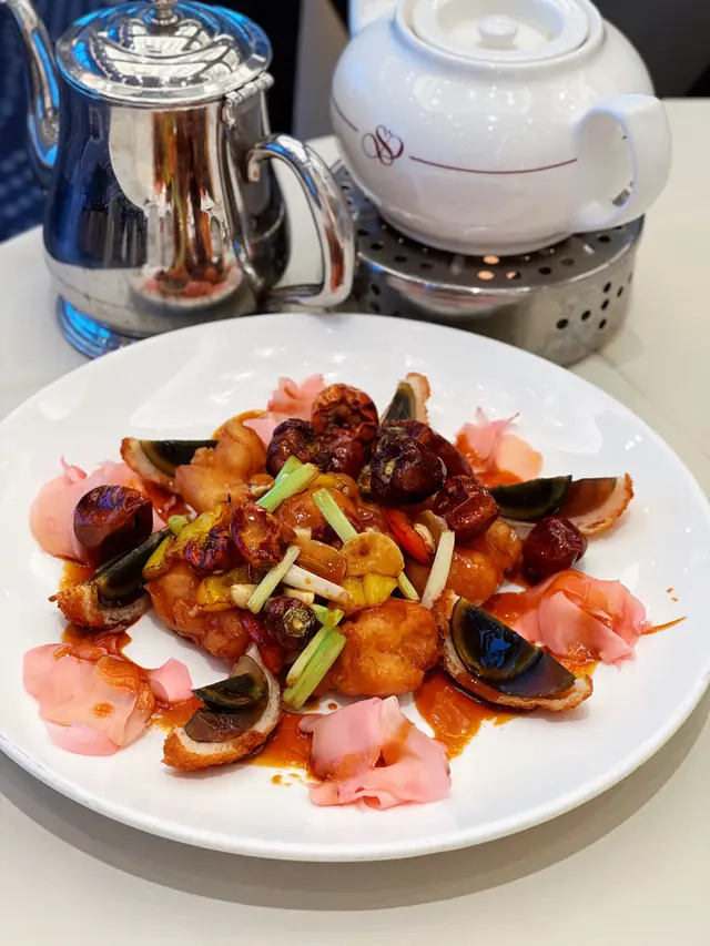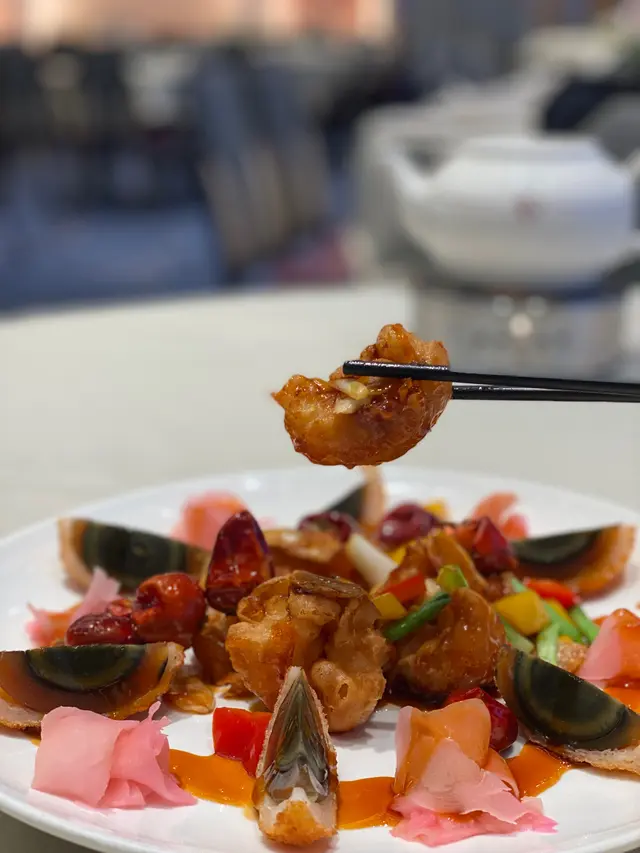 金獎宮爆蝦球是一道令人垂涎欲滴的中式美食。蝦球炸得金黃酥脆,外層酥脆的口感包裹著鮮嫩多汁的蝦肉。宮爆醬汁的調味恰到好處,帶有微辣的風味,能夠提升整道菜的層次感。作為配菜的皮蛋切成一小件,外皮包著脆炸蝦肉,每一口都帶來了滿滿的蝦香和皮蛋的美味,令人回味無窮。這道菜的烹飪技巧和調味技巧都十分出色,展現了中國菜的精髓和經典口味。