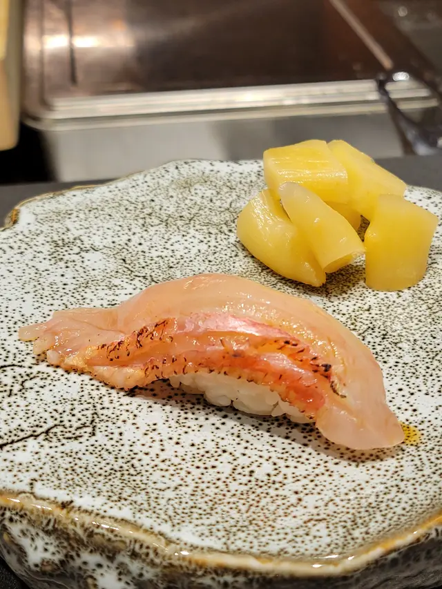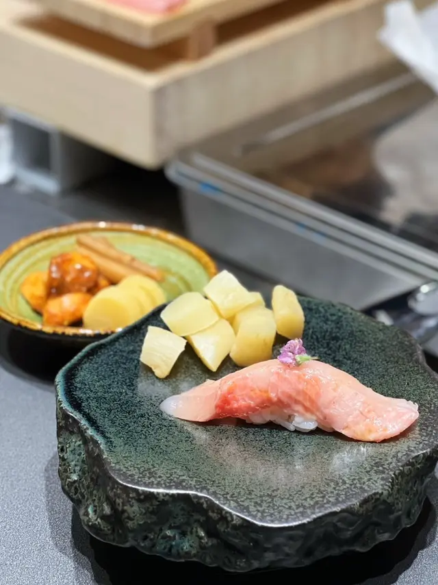 好友生日爲他慶祝吃好一些在銅鑼灣"鮨悠"book定位。這家料理店是朋友介紹的口碑不錯,希望好友喜歡!晚餐有兩份Set 選了其中一份"悠"YUU $ 988 / 位有前菜三品,刺身四款,和食,壽司8款,湯,甜品等。前菜三品精緻,好特別,先吃兩片仙人掌未食過,以爲會有草青味誰不知入口清甜清爽口感似食青提子般,點一點黑醋汁酸酸甜甜相當好味!接着是羊羹狀態的蟹肉高湯配有秋葵,滑脫脫的。白梅貝口感味道都似鮑魚,好甘香。深海池魚薄切,肉質嬌嫩嫩的配葱花添上香氣。赤貝鮮甜!爽脆!白子兩種口味~原味有滑滑忌廉口感,而經炙燒過的表面有點脆脆的焦香味比原味較甘香。鰹魚Baby肉質細嫩加上鰹魚骨肉製成碎末混合入口增添了一重豐富鮮甜味道。太刀魚配有甜美南瓜蓉+兩朶入口即溶花型大根,金色器皿盛載賣相非常優雅!熱呼呼太刀魚軟綿鮮甜!師傅用心製作,細心介紹……就是喜歡Omakase客人與師傅之間的互動。嫩嫩酸甜的羗粒旁是;梭子魚,配上芝麻和葱鮮甜又香口。帆立貝壽司配柚子皮帆立貝爽嫩鮮甜柚子味清新。金目鯛壽司肉質帶爽肥美。海瞻壽司滑溜溜清甜入口即溶。牡丹蝦壽司頂層配上燒過的蝦糕特別甘香!赤目魚壽司肉質晶瑩魚脂豐盈似有吃豚肉之感,葱味清香爽口。銀雪魚baby壽司肉質嫩嫩的掃上了一層黑醋麵豉醬汁酸甜中帶有韻味。中拖羅壽司色澤赤紅紅的油潤,肉質嫩滑無筋。舞茸清湯滾燙燙的湯水清澈而鮮甜,舞茸爽滑。飲完湯感到大滿足! 期待下一道甜品 ~好友捧着肚子大讚! 吃得開心,員工服務周到很滿意! 值得!甜品 自家製蝶豆花水信玄餅造型漂亮,利用蝶豆花的自然色調製成,配上黃豆粉,黑糖,紅豆。…查看更多