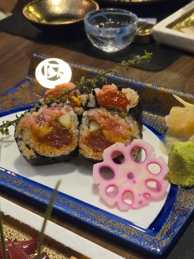 朋友升職請我食餐好野,此間日式居酒屋相當隱世。這裡的環境高雅,食物不僅美味,賣相精緻非常打卡able。坐在吧枱欣賞師傅製作每欣賞師傅製作每道菜品,真是一種享受,讓這餐飯食得更開心。金糖盒 $158以酥脆的最中餅盛載著軟滑的日式豆腐、鮮甜的海膽和咸鮮的三文魚籽。一口咬下去,幸福感瞬間充盈口腔,味道層次豐富。金龍珠海膽吞拿魚蓉卷 $158卷物裡內有黏口的醬漬蛋,搭配鮮甜的海膽和入口即化的吞拿魚蓉,咸甜滋味,美味滿分。粟米脆餅壽司 海膽三文魚子 $138菜以墨西哥Taco的方式呈現,脆餅一咬即碎,內裡夾有海膽、三文魚籽和沙律菜,搭配新意十足,口感獨特。戀丼 $238牛舌心彈牙爽口,搭配滿滿的三文魚籽丼飯,飯底的醬醋和蛋液融合,令人忍不住一口接一口。月見薄燒宮崎和牛飯團 $168和牛用火槍即燒,包裹著飯團和蛋,順滑濃郁,為味蕾帶來極致的享受。煙燻金䱽魚 $198煙燻白梭魚子香氣四溢,金䱽魚肉鮮嫩,甜美的油脂豐富,煙燻風味讓人陶醉。自家製雞皮蝦 $58雞皮香脆,蝦肉彈牙,簡單卻滋味十足。嚴選松板豬(頸) $58豬頸肉爽口有嚼勁,充滿油脂香。厚燒牛舌心 $58簡單用椒鹽調味,牛舌心爽口彈牙,讓人無法抗拒。安格斯牛肋肉 $58肉味濃郁,軟嫩多汁,每一口都是享受。…查看更多