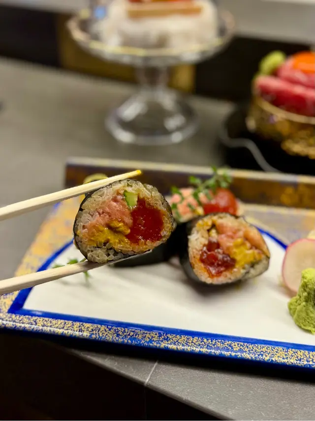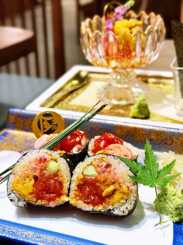 今日同男朋友出嚟拍拖行街食嘢本身仲諗做咩帶我去間隱蔽餐廳食完覺得終於明白點解入面有咁多客因為啲嘢食真係好好食(感動!!- - - - - - - - - - - - - - - - - - - - - - - -1. 海膽拖羅蓉千層脆脆/焦糖鵝肝和牛千層脆脆呢件壽司嘅層次感 成件漢堡包咁中下嗰兩塊紫菜天婦羅有啲驚喜似係啱啱炸起 脆到好似炸魚皮咁夾住油脂甘香嘅拖羅蓉 口感綿密加埋新鮮海膽/焦糖鵝肝、醋飯一啖咁食嘅口感真係好豐富個人超級鍾意焦糖燒完嘅甜停留喺濃郁鹹香嘅鵝肝上面2. 金酒杯當時見到餐牌上面影到都好吸引可能用酒杯裝關係 感覺好奢華咁實物魚籽少咗 但係竟然海膽多咗!!入面仲有醋飯、拖羅蓉同松葉蟹肉搭配紫菜 係用嚟包住以上刺身食變咗壽司師傅包比自己食咁XD刺身望落新鮮 食到有淡淡鮮甜味3. 金龍珠海膽吞拿魚蓉卷呢個類似太卷 入面卷咗唔同新鮮刺身包括海膽、吞拿魚蓉、蛋黃漬同青瓜當中蛋黃漬就係金龍珠 因為形狀相似鍾意蛋黃漬嘅濃郁滑順 而且帶有鹹香可以將成個太卷嘅口感、味道昇華4. 犇丼-月見日本尾崎和牛丼見佢餐牌寫住每日限量10碗諗住冇就叫另一碗海鮮丼好在今日食飯時間算早仲有好似一片片花瓣咁放好和牛尾崎和牛好有牛味 質感較爽中間加隻月見蛋黃 口感更加滑順5. 燒物(炙燒爆膏四頭巨型虎蝦、自家製雞皮蝦、厚燒牛舌心、黑豚五花腩、安格斯牛肋肉)炙燒爆膏四頭巨型虎蝦有成10吋咁大嗰個蝦頭都係滿滿蝦膏 撈飯一流隻蝦都好新鮮 蝦肉質感係新鮮爽彈嘅另外自家製雞皮蝦都好值得推介爽彈蝦肉比一層薄薄嘅雞皮包住雞皮燒到金黃香脆 食落外脆內嫩其餘三款都好正常 食材算係高質牛舌心、五花腩、牛肋肉好有肉味燒完表面金黃 但都仲係肉汁滿溢尤其安格斯牛肋肉真係幾有咀嚼感…查看更多