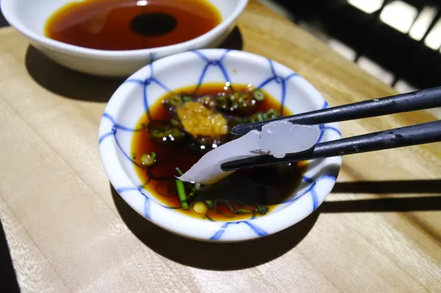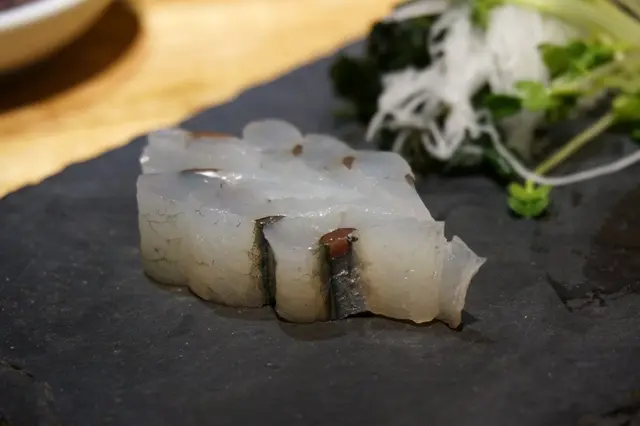 又食靚景、又嘆靚刺身(第一節) happyduckling等级42016-06-231K 浏览 关注 80年代初,香港極少日本料理,那些極少數的日本菜餐廳也是非常高級的餐廳。那些年尚在求學階段的筆者,簡直是可望而不可及。再後一些時間,大概是1990年左右吧,某迴轉壽司被引入香港,並越開越多分店。隨後,陸續有其他日本連鎖店以直資或專營權形式加入戰團;全部以大眾化價錢供應壽司,香港人多了接觸機會,開始接受壽司及刺身。說來有點慚愧,當年的筆者對正統江戶前壽司完全沒有認識,第一次接觸的也只是迴轉壽司中的魷魚、八爪魚,因為較易入口。到了大概2000年左右吧,香港人對壽司的要求越來越高,加上生活水平提高,市面開始出現一些由日籍壽司師傅開設的高級鮨店。自從一次日本之旅,筆者接觸了其他種類的刺身,才感嘆刺身的美味,簡直可以說是開了竅,開始到處品嚐本地鮨店。近年,越來越多本地師傅主理的鮨店出現,部份質素與歷史較長、日籍師傅主理的鮨店不相伯仲。午飯要吃壽司定食,一向鍾情銅鑼灣區的鮨店,因為數量多、又集中在幾棟大廈內,即使沒有訂枱,去到某店發現已經滿座,也可以到樓上樓下碰碰運氣。筆者只是一個為口奔馳的打工仔,平時絕少花費在高級日本料理食晚飯,偶一為之,當然要揀間好吃、最好還要有靚景的。由於銅鑼灣的鮨店沒有景觀,而在香港要吃正宗高級壽司,銅鑼灣區以外,就要數到尖沙咀了;若再加上要有景觀,應該就只有【鮨真】可以滿足要求。由於大廈外型長長窄窄,為了盡量善用空間,餐廳分成兩個區域。其中一邊為一個小小的餐枱區,望向無遮擋的港島中上環一帶海景,並設有趟門以劃分成為一個私人包廂。另一邊為壽司吧,可以遠眺中環灣仔一帶。壽司吧檯的設計採用了日本銀座高級鮨店的傳統風格,並沒有設置任何展示各類刺身的凍櫃,而是將所有刺身先放在木盒內,然後再將整個木盒放在雪櫃。壽司吧檯的整體佈置更為簡潔、空間也變得更為寬;師傳也有更多空間可以在客人面前展示準備各道壽司及刺身的技巧及刀功,這也是品嚐廚師發辦(お任せ)一定要坐在壽司吧檯的一個重要原因。壽司吧有八個座位左右,共有三位壽司師傅,另外有兩位熟食廚師;全部都是出身自壽司名店【見城】的香港師傅。當晚到達餐廳的時間約為晚上六時半,晚飯時段剛剛開始,師傅正在準備食材,其中一位正在手磨新鮮山葵,壽司吧檯又放了一隻全熟的日本毛蟹。晚市除了餐牌散點之外,共有兩款廚師發板《菊》($1,180)及《櫻》($1,380);餐廳正值三週年紀念,多了一款《三週年割引》套餐($680)。優惠套餐價錢確實吸引,又不想兩個人都食同一款,《櫻》貴一點,卻多三款和食。決定選擇《櫻》及這個《三週年割引》。《三週年割引》套餐共有五款前菜:螢光魷魚、味噌青瓜、素麵、白粟米及水雲。素麵、白粟米及水雲分别用獨立的小器皿以冰鎮形式呈上,貫徹高級日本料理的精緻形象。冰涼的烹調方法又相當適合夏季的炎熱天氣,體現了日本料理不時不食的嚴格取材及著重季節變化的烹調技巧。螢光魷魚已經用醬油及醋略為醃漬,而且完全沒有去除內臟。放入口中咀嚼,偏向軟腍彈身,與大隻魷魚那種略帶黏牙的質感有點不同;又清楚感受到濃厚的海水鹹味及魷魚膽的甘澀及重口味海鮮味。配上微酸的醋蛋黃醬,除了提味之外,也可中和那陣極重的海鮮內臟味,嗜吃這種口味的人的最愛。味噌青瓜所採用的是日本溫室青瓜,本身非常爽脆、清甜、水份充足,完全沒有中國產青瓜的草腥味。味噌並未完全發酵,仍然保持大豆的外形,拈起一些放入口中品嚐,有點似糯米的煙韌、又有淡淡的豆香以及日本味噌的鹹香味,但卻沒有那樣濃烈;用來配襯爽口的青瓜,清甜中又增加一陣鹹香,相當特別。青瓜又可去除螢光魷魚的重海水味,用來清清口腔及味蕾的殘餘氣息。雖然和烏冬一樣,素麵都是用小麥製成,但由於是在嚴寒的季節製造而成,具有非常的彈性、嚼勁而且非常幼滑;最適合在炎熱缺乏食慾的夏季,做成涼麵食用。別小看這一小湯匙素麵,烹調工序並不簡單。雖然所配合的只是最普遍的梅湯,但卻極適合夏季,微微帶酸的梅味十分開胃;表面又加了兩條幼切魷魚刺身及一些紫菜碎,增添口感;麵條又非常幼細滑溜,吞下去特別滑順爽口。水雲產自日本沖繩,屬於海藻類,質感黏滑爽口,但卻沒有明顯的味道。今次的烹調方法也是最通常的那一種:用水沖刷去除多餘的鹽份後,再蘸醋配合食用。與其餘四款前菜比較並不太過特別,明顯被比下去。一向都知道北海道白粟米,但之前去旅行也未有機會品嘗,估唔到今次有機會,還要是「生」「吃」的!當然,生吃的粟米絕對不會又軟又腍,但在想像之外,竟然非常爽口、又有一點軟,總之很容易一口一口地咬出來;而且非常清甜、多汁,又完全沒有任何渣滓及粟米粒的粗糙外衣。雖然沒有烚熟了的粟米那種軟糯及因熱力而散發出來的香味,但生粟米卻能徹徹底底保留了那份天然的粟米清甜及汁液,是兩種截然不同的食味。筆者就十分喜歡,太太則比較接受烚熟的粟米。無論如何,以天然清甜的粟米去除各種前菜殘留在味蕾的氣息準沒有錯誤,以準備品嚐刺身的鮮甜。《櫻》則只有兩款前菜,除了以前吃的日式沙律,通常都配上迷你車厘茄,雖然多汁,但始終太細個、又不夠清甜。這個來自日本的温室有機番茄,果然與別不同。除了水份