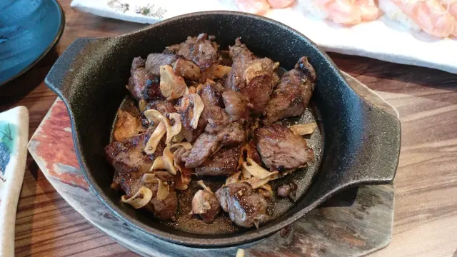 胡椒柚子醬伴中拖羅:同刺身一樣新鮮得黎唔腥,胡椒味偏重,但兩者幾夾,食起黎幾特別。焗蠔北海燒:蠔大小適中,配料好豐富,有菇、洋蔥、薯仔,落左勁多芝士好creamy