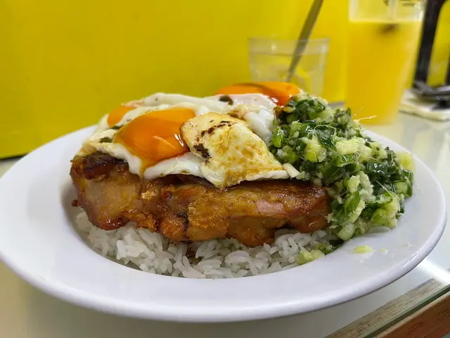.📍光榮冰室📍 #饅頭去荃灣 #饅頭的港味道跟 @calorieswithmic 搵食💒學教主話齋,減肥都要俾自己休息下,更何況搵姨媽嘅路途可能會會增肥, 既然係咁就唔好畀咁大壓力自己,放心咁食好西啦😂,只要心態好,份量控制得當,一切都會變好的。------------------------------開心浩園餐 ($50)蔥油雞扒飯加三隻太陽蛋(俗稱三眼仔🤓),好大碟,完全冇偷工減料。蔥油雞扒比3大隻太陽蛋遮住,滿滿嘅蛋白質。太陽蛋煎得好靚🍳,做到半生熟流心嘅效果😍;蛋黃顏色比一般蛋深色,食落去爆漿咁濟,成個口都係濃郁嘅蛋香😋;個人建議一隻就咁食兩隻用嚟撈飯。雞扒差唔多有我成塊面咁大,而且都Ok厚肉,冇好大陣雪藏味,外皮煎得香脆👍🏻,又唔會覺得好熱氣;肉質方面,邊邊位有過乾過硬嘅情況,但食到中間都算有汁嘅,啖啖肉嘅感覺真好🍖🤤,整體不過不失,但咁大塊我都好滿足。雞扒上面淋上嘅蔥油份量唔算多, 所以香得嚟唔會太鹹同太油,足夠用嚟撈飯,再加埋蛋同衰多嘅甜豉油,令成碟飯更香味道更豐富💯,真係好吸引,令我忍唔住一啖接住一啖。但比較可惜嘅係飯就偏淋,不過未去到好濕潤,係可以接受嘅👌🏻,因為本身會撈豉油同蛋漿,如果可以做到粒粒分明嘅話口感就更好。飯同餸份量都好多,好抵食性價比高🙈。其實一個女仔食就應該要嗌少飯,不過我本身胃口大,加上今日day off,有時間慢慢食,所以就咁KO咗一個餐🤘🏻。跟餐嘅奶茶茶底好濃☕,澀味充足,奶味就差啲,所以唔夠香滑,但已經比一般嘅茶記出色好多。------------------------------整體評分:7.8/10小編回頭率:7.5/10又黃又抵食💛,質素中上,店員服務態度都好好,上菜嗰陣特登遞支豉油比我,唔怪之得咁多人排隊。果然跟教主搵食係冇錯嘅,今餐我好享受,阿門😌🙏🏻。…查看更多