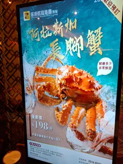 逛旅遊展後,順便在附近晚餐。朋友知道有每斤198阿拉斯加長腳蟹,所以在此癲拿。首先,要選蟹。78兩的蟹,接近五斤。<一斤十六兩>之前做298,現在優惠是 198,計落每斤節省了一舊水。加上自己屋企未能處理如此巨蟹,唯有在此享用。原隻巨蟹,大大隻,紅彤彤紅當當,果真喜慶之色。六腳二鉗,全身帶刺。以剪刀在柔軟的骹位入手,成功拆出長長的蟹腳。剪開蟹腳,成功抽出蟹柳。真蟹肉,一梳梳,夠鮮甜,單食已經好好味。除了蟹腳,就連腳趾蟹身也不能放過。蟹鉗肉質,不如蟹腳那般鮮甜。甘香的蟹膏,撈飯一流。黑毛豬叉燒 配餅 肥瘦相間的叉燒嫩滑,有底味,玫瑰露酒不明顯,易入口。羊肚菌燒豆腐 有豆腐有菇有菌有菜黑松露鮑魚雞煲 拆蟹後,雞煲已放涼。黑松露香氣就減弱了!但鮑魚容易咬,雞肉唔柴,整體依然好味!可是煲底很多油。田園時蔬~上湯菜心 每餐要食菜,扮健康。今晚無甜品糖水,無水果。埋單每人380個大洋。是日客滿,職員很忙碌!服務,心照!…查看更多