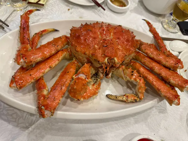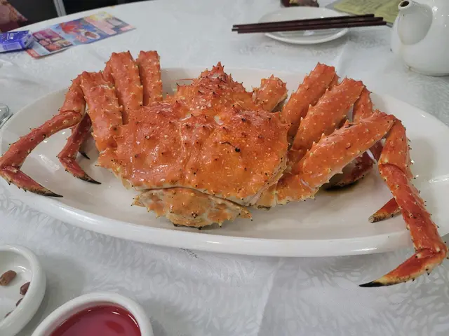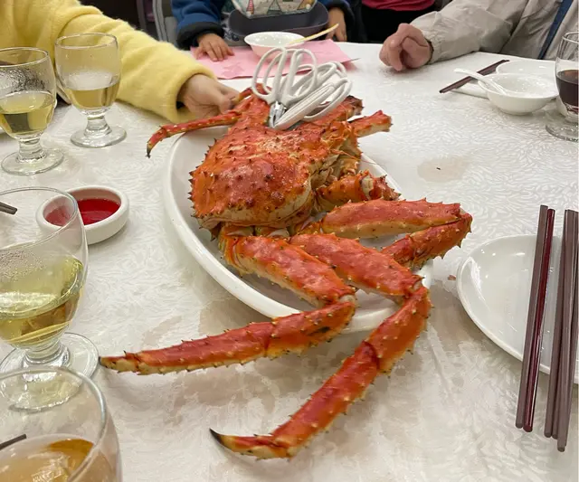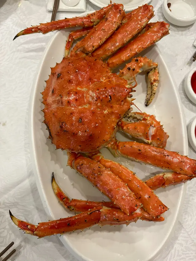 🔸阿拉斯加長腳蟹 ~ 加$498升級長腳蟹至六斤, 原先套餐是四斤左右, 原隻清蒸,味道鮮甜,啖啖肉, 好味道🤤。 🔸片皮鴨 ~ 片皮鴨質素普通, 我相信套餐的主角是長腳蟹吧! 🔸生菜包鴨鬆 ~ 惹味的鴨鬆,包上生菜吃,很爽口。 🔸金銀蛋浸紅莧菜 ~ 清清地,味道不錯。 🔸野生竹笙扒勝瓜甫 ~ 竹笙味道清香,勝瓜清甜。 🔸京都骨 ~ 味道酸酸甜甜,可惜口感不夠軟腍。 🔸桂花糕 ~ 最後甜品送桂花糕。整體長腳蟹套餐幾抵食, 後來我們發現酒家開到凌晨三點, 因為大概食到十一點幾還有客人入座😁。🏷️溫馨提示~ 整個用餐體驗均屬個人分享意見, 只作參考😊。 …查看更多