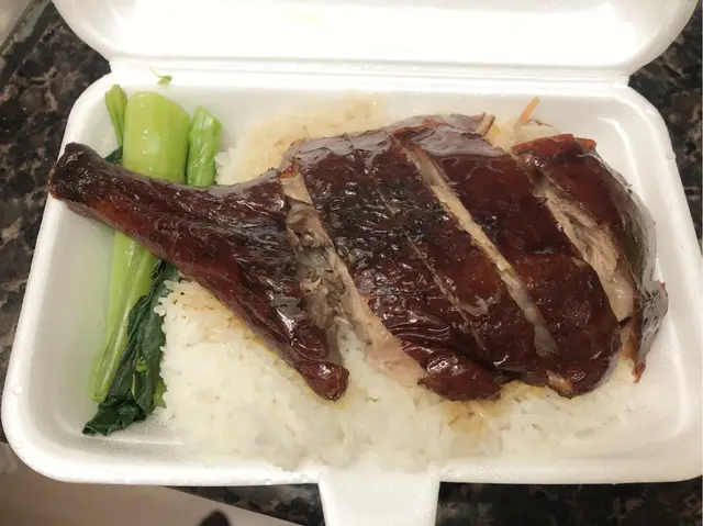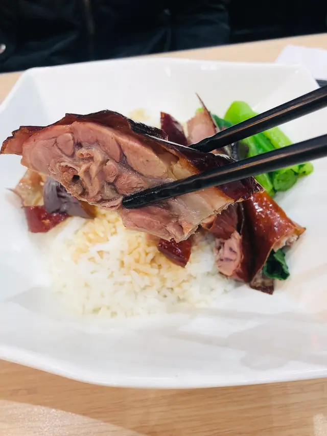 怎樣才算是靚燒鵝,我認為最重要是新鮮即製,脆薄的皮下帶著半溶鵝脂,再配合鬆軟入味的鵝肉,正就是完美的組合!清明鵝肥,擇日不如撞日,今午走到離公司附近不遠,以古法煙燻製造為叫號的阿爺燒鵝,找到了合意的。一個人的午餐亦可以這樣: 阿爺燒鵝脾飯 $105 (+$10 轉雞油撈麵 ) (+ $20 拼乳豬 (+$8 老火湯)眉豆花生雞腳湯眉豆花生雞腳湯先到,媽媽老火湯的味道,沒有賣相,亦不會有驚喜,但就是清潤醇厚,眉豆花生雞腳豬骨瘦肉的黃金組合,歷久不衰!阿爺燒鵝脾拼乳豬漂來陣陣燒味香,兩者同樣出色。好一只燒鵝脾,色澤亮麗,鵝皮多麼的薄,這件看來皮下脂肪不厚,入口方知鵝脂半融,倍增豐腴口感。這一件,清楚看到了半溶的鵝脂,皮脆肉嫩汁豐富,連骨之肉最嫩,鵝脾物有所值。乳豬亦不輸蝕,見樣子已經知道皮香脆,層次分明。雞油撈麵全靠雞油與鼓油之功勞,粗麵可成為佳餚,濃郁味香,口感非常好。冰室的環境,敏捷的服務,態度可以,地方企理,價錢公道,值得再訪。…查看更多