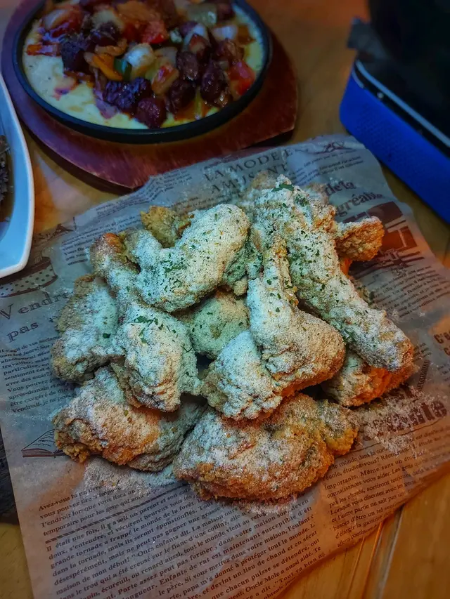今日,我同朋友去試個間韓式炸雞店。第一次食佢地嘅雪花印第安洋蔥粉炸雞,個名真係好長,見個名有雪字,以為會凍凍地,定係冰鎮炸雞。原來係講 D 洋蔥粉好似落雪咁,撒係炸雞上面,個味都真係好好食!