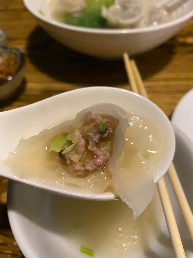 haha我哋兩個點左兩份煎餃子,一碟蔥油雞。一枝豆漿。餃子即叫即煎,開放式廚房睇到同埋聽到廚師煎餃子。我哋一向都好喜愛食煎餃子,呢度嘅煎餃子整體不錯,香口得來沒有肥膩感覺。雲耳椰菜豬肉餃的口感比較多層次,雲耳及椰菜絲也爽口,感覺健康清新。隨碟附有少少辣嘅餃子汁,令到味道更突出。白菜豬肉餃子感覺比較傳統,佢哋用嘅白菜係大白菜,即係好似紹菜,餡料顏色望落去都比較淡。食落去口感比較林,配合酸酸地嘅應該係似鎮江醋,係傳統家庭味道。最後我哋嗌左一碟蔥油雞。蔥油幾香,雞嘅味道都幾鮮,肉質香滑,唔錯。最後食餃子不能忘記配上豆漿😊期待下次再嚟食其他味道的煎餃,及其他小食😊…查看更多
