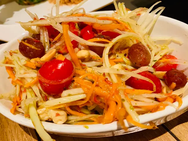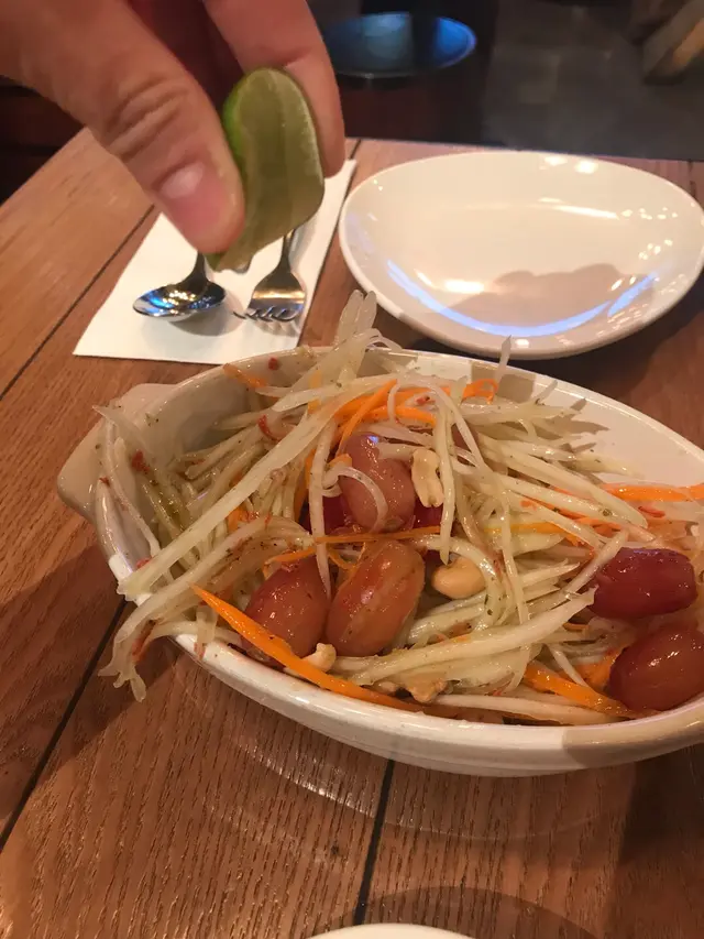 今晚女朋友想食泰國野 所以專登搵左間口碑唔錯既泰國餐廳黎試試 唔近屋企果頭 係專登走過黎食既 希望唔會失望啦餐廳既環境同裝修都唔錯 好多情侶同一班朋友都黎食 咁岩仲比左張corner位既枱比我地 睇睇張menu先 黎到泰式餐廳點可以唔試試個泰式奶茶阿 係泰國都成日飲 所以呢個都係正宗既 唯一唔同既佢係會再係上邊加cream 令到個奶茶更加滑同埋香另外既餐飲就係新鮮椰青($35) 係幾清新既 同埋果肉都可以食埋 岩曬食浪味野食既泰國野中和一下講下個前菜先 第一道係青木瓜沙津 呢道菜作為前菜就岩曬啦 因為酸酸甜甜咁 非常開胃 可以儲足戰力食個main dash阿小食拼盤每樣都有2件 個炸蝦球入邊夾住一條蔗 咬落都幾爽口 仲有其他食物例如米紙卷 魚餅 全部都新鮮炸起 外皮香脆跟住就係食個招牌菠蘿炒飯配虎蝦($158)作為呢間餐廳既招牌菜 當然無令到我失望啦 入黎果時都見到每枱都會有一碟 面頭有2隻大虎蝦之後就有串菠蘿串 自己一個食既話份量都幾多既 個炒飯好夠獲氣 虎蝦又大隻又彈牙 而且菠蘿炒飯個飯炒得唔酸 恰到好處最後2個人賣單一共373$ 雖然唔話平 但個人認為都抵食 叫到成枱野食同野飲 都唔洗400$ 所以呢排無旅行去既人又想試試泰國野既你可以試試佢…查看更多