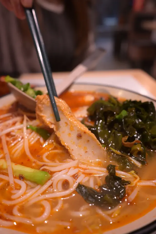 貴緣小鍋米線 北角和富道21-53號和富B樓B15-16號舖味道評分:☄️(必食之選)>☀️>🌤>⛅️>💨☄️招牌酸辣湯 $33紅薯粉| 湯底7分濃(加濃半級)+$1 |中小辣|滷水雞翼 +$11,滷水大腸 +$11,炸響鈴 +$10呢個湯底絕對有驚艷到我,又濃又香,佢地招牌酸菜擔當左個重要角色,出眾而且唔會over左😭第一次見可以加濃湯底,重口味的我加左半級覺得perfect! 感覺配米線都會好夾~btw,響鈴吸咗啲湯汁之後都變到好好食滷水雞翼係很甜口,第一次食依隻味非常獨特,必試!滷水大腸份量都幾多,而且幾大嚿,正常好食~☄️【加購小食】大漠烤豬仔髀(2隻)$38有好多調味粉佈滿豬仔髀嘅表面,超級惹味!豬仔髀嘅口感屬於外皮硬但中間肉質滑嫩,多層口感,要食!☀️青花椒麻濃湯 $35米線|中小辣|魚肉春卷+$12,螺旋藻+$10酸辣麻辣湯底平時就食得多,青花椒湯底就比較少有餐廳做,一定要試試佢!湯底感覺比起酸辣湯底冇咁刺激,青花椒螺旋藻處理適宜,唔會有好乾好硬嘅情況,而且味道突出,連埋微辣湯汁一齊食更有新風味!☄️小食甜酸齋 $26酸酸甜甜,開胃之如又剛好可以解辣~檸檬可樂 $8 | 黑芝麻豆漿 $10…查看更多