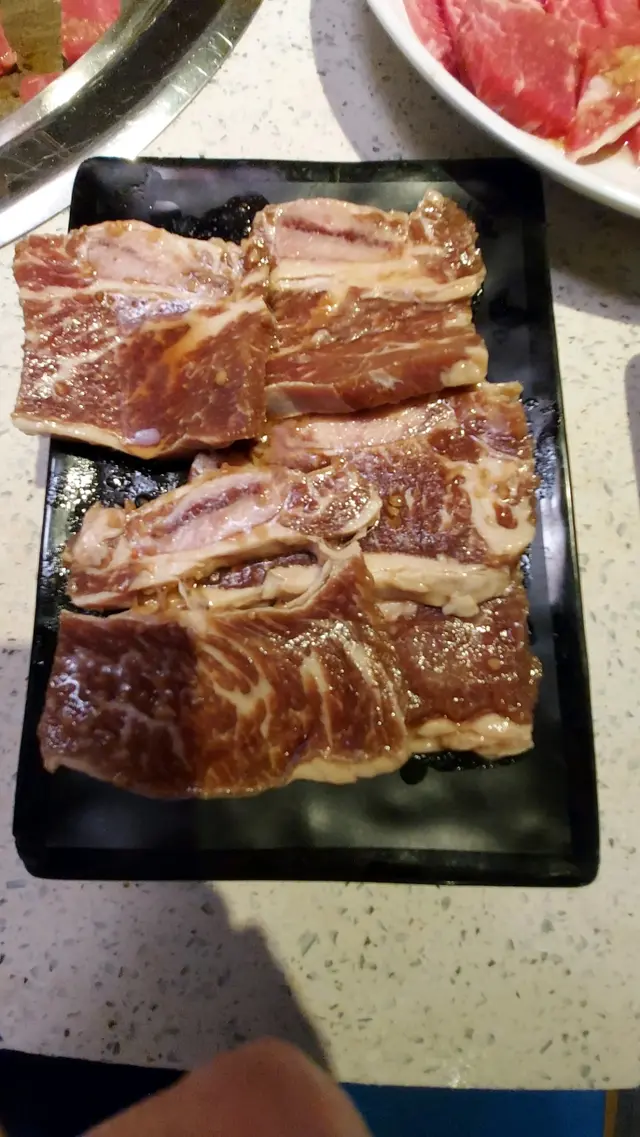早一日訂位,預訂可優先坐卡位。個爐板幾好燒,唔易黐底,限食90分鐘內換咗兩次算係少。收得成人晚市每位$26x,小童$16x左右。唔能夠期望有華麗裝潢,並且個抽氣喉亦都大概只能抽走五成油煙,所以食完會預咗一身油煙徐。不過俾啲肉份量唔少亦非下欄嘢,仲要有啲三文魚刺身片食吓,只係魚生等咗45分鐘先上菜。首輪送嚟嘅牛肩肉同牛板腱肉都肥瘦有緻易嚙開,惜後勁不計,之後幾回送嚟開始愈嚟愈靭冇咁好牛味了。然而牛仔骨就keep住好食,少少肥肉黐住大大片瘦肉,燒起嚟唔鞋口,叫咗三回。值得一提係韓式蛋卷,賣相唔美豔,但食到有啲蛋汁香溜溜,卷埋啲紫菜幾creamy又唔太鹹,於是叫咗兩回。炒粉絲又係樣醜黐埋一堆但唔太油幾夠味。以小型韓燒放題嚟講質素算係交到差。…查看更多