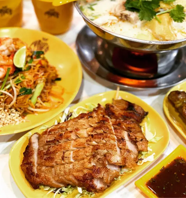 《小曼谷 地道泰國菜》🤤🇹🇭1. 風味燒豬頸肉 ($128)肉質鮮嫩,充滿油脂,表面燒到少少焦脆,而且非常焦香,配上泰式酸甜汁可中和油膩感。🌟 評分: 9/102. 泰式燒原隻鮮魷 ($165)燒到好焦香,但肉質比較硬,不過配合泰式酸辣汁非常惹味。🌟 評分: 7/103. 串燒: 牛肉串 雞肉串 ($19/串)牛肉味道酸酸甜甜非常開胃,而雞肉串好濃沙嗲味,肉質鮮嫩。🌟 評分: 7/104. 泰式馬拉盞炒通菜 ($108)份量多,而且十分惹味同有鑊氣,好適合餸飯既小菜。🌟 評分: 8/10————————❤️ 味道: 8/10🧡 環境: 6/10💛 服務: 7/10💙 性價比: 6/10…查看更多