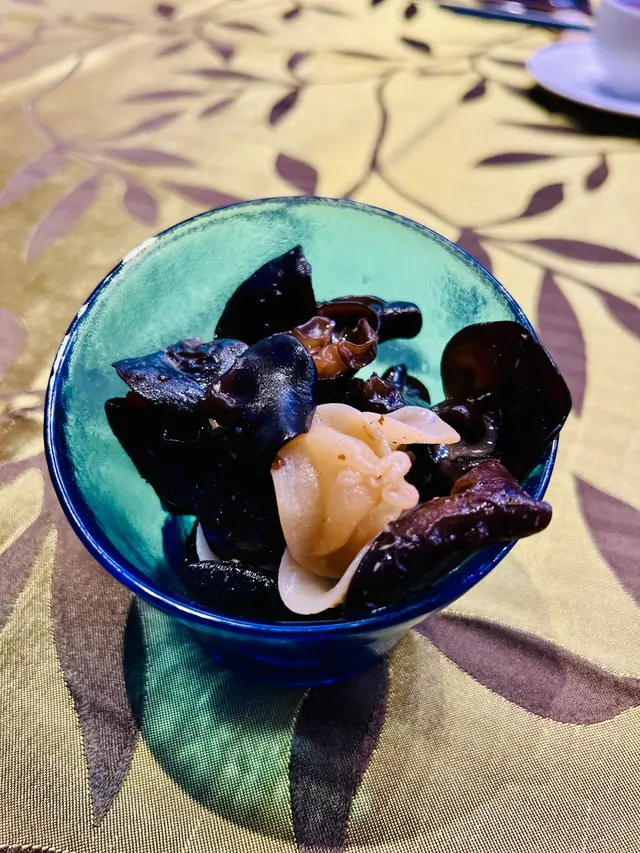 今日帶兩老食好野,來到這間中菜館,位置位於酒店的商場內,中菜館長形設計,裝修一點都不馬虎,還帶點氣派呢!這裡的套餐款式很多,還有一些是孖寶的,當然少不了散叫的菜式,我們左挑右選,終於點了幾個菜色。餐前小食,每枱都會有的餐前小食,今日是芥苿黑白木耳,味道很爽脆,吃到有日本芥辣的味道,用在餐前小吃非常合適!雪梨無花果花膠燉湯,大大片的雪梨浮在水面,裡面還有原粒無花果和數片花膠,雪梨的潤喉加無花果的清甜,再加上花膠的滋陰,味道清而不躁,是秋冬的最好湯水。眼見隔離枱的生炒臘味糯米飯很吸引,所以我們都不執輸叫了一個,糯米飯炒得粒粒分明,口感煙靱,色澤也炒得很均勻,臘味很多,但味道不會像坊間的那麼咸,我們三個人可以每人吃到兩大碗,份量可不容懷疑!面頭還撒上蛋絲和蔥粒,令到糯米飯梗香,視覺梗豐富。招牌白胡椒蟹出場,胡椒蟹用鐵板上,臨上枱前侍應幫我們將白胡椒汁淋上面,熱騰騰的聲音响起,加上胡椒的香味撲鼻而來,非常治癒。肉蟹很大隻,和我的手掌差不多,蟹拑也很大隻,一啖一啖的肉咬著,非常滿足,蟹腳也可吃到一絲一絲的蟹肉。胡椒令到蟹肉鮮味提升不少,非常惹味。除了蟹外,他們用上紫洋蔥墊底,紫洋蔥吸收晒白胡椒汁,入口辛辣而帶香甜,一片一片的吃著,慢慢地給我全部吃光了。招牌菠蘿咕嚕肉賣相吸引,咕嚕肉咬落去嗦嗦聲的很脆口,肉質很嫰滑,酸酸甜甜的味道充斥著成個口腔,最欣賞的是咕嚕肉吃到尾面的一件面頭都是脆口的,不會因為放涼了而變得淋身。菠蘿雖然分開上,但廚師切成一片片再放入原身菠蘿入面,菠蘿很香甜,還帶點蜜味,可口非常,這個菜式很值得推介!今餐吃得非常滿足,兩老也很開心,大家都吃過飽飽,今晚一定很好瞓呢,哈哈!!…查看更多